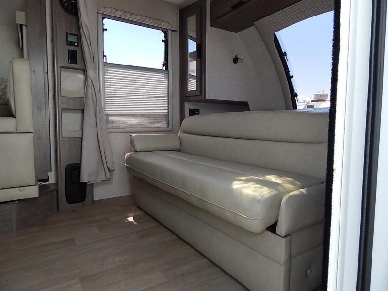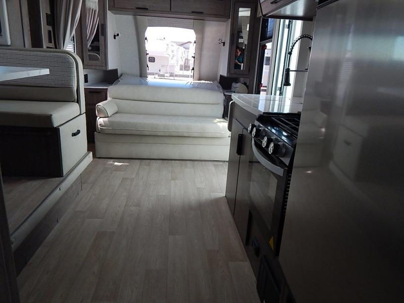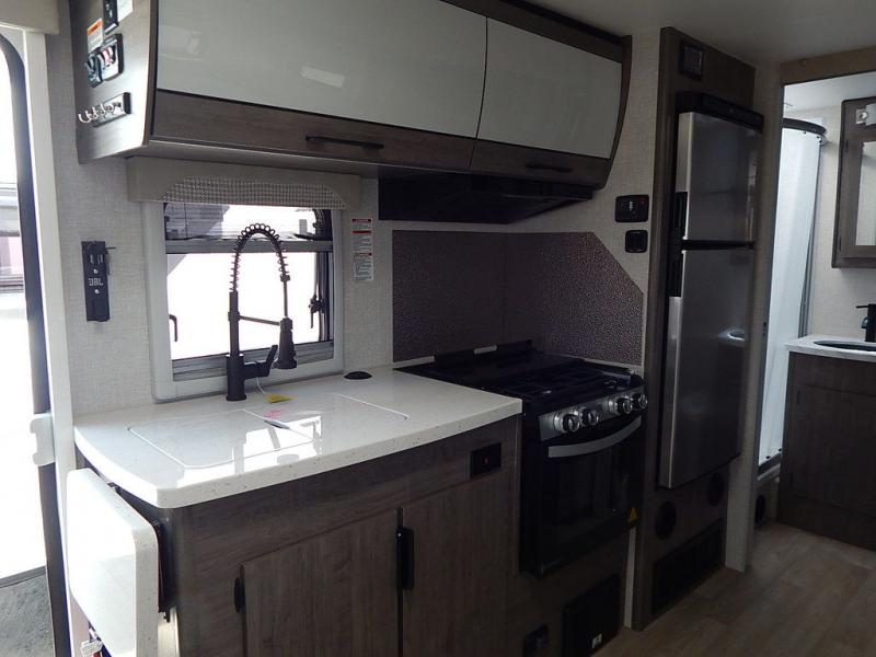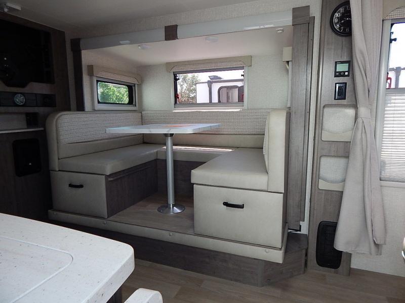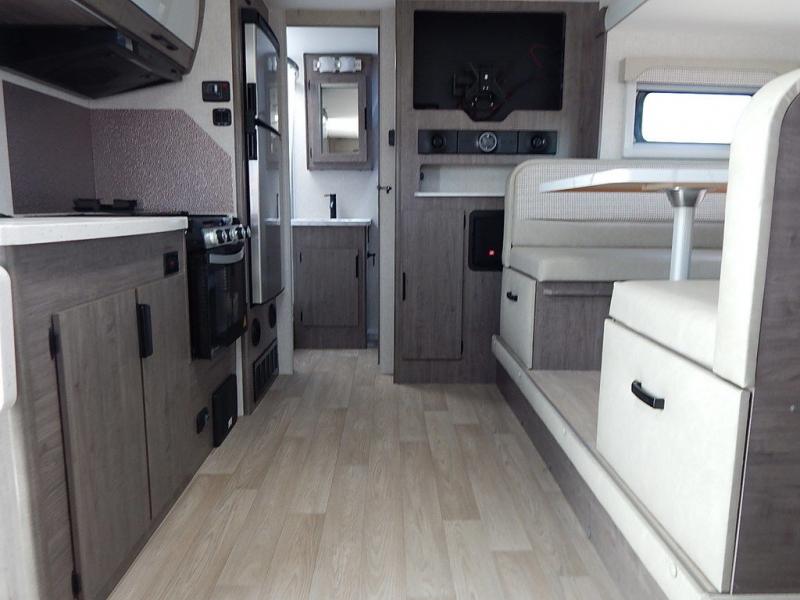 Whether you're a mountain hiker, beach bum, in-town shopper, or early morning fisherman, this Lance travel trailer is for you! A full rear bathroom adds privacy as you get ready in the morning, and the deluxe queen pillowtop innerspring mattress with a bedspread and two LED reading lights is at the other end of the trailer. This bed can be sectioned off by drawing the privacy curtain, and the U-shaped dinette will provide sleeping accommodations for two more people. If you prefer, you can even change out the bed for the optional convertible sofa bed. Each person will benefit from a hot meal prepared in the kitchen on the stainless steel three-burner range or you can choose the optional convection/micro-air fryer.
