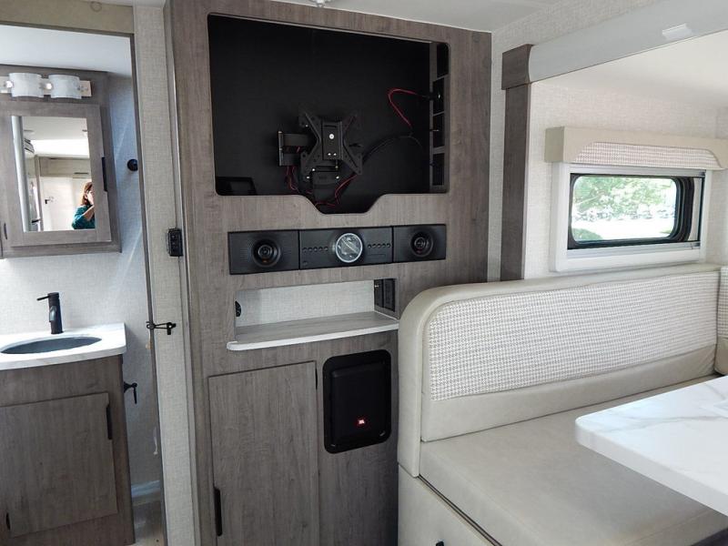 The line-up for the Lance travel trailers centers around three gorgeous interior décor options, a lengthy list of product enhancements, and simplification of ordering with many optional features being made standard. Some of the stand out features you'll want to take note of are the Keyed-Alike storage compartment doors for all of your camping essentials, the dual layer Azdel composite to prevent your unit from rotting, and the durable one-piece. The interior includes Euro overhead cabinetry designs, a pop-up electrical/charging tower, and a Shower Miser water system. You'll also find an innerspring mattress with a bedspread, a dual pane shower skylight, USB charging ports to keep your electronics at 100%, plus a JBL AM/FM stereo and JBL interior/exterior Bluetooth speakers to keep the party going!