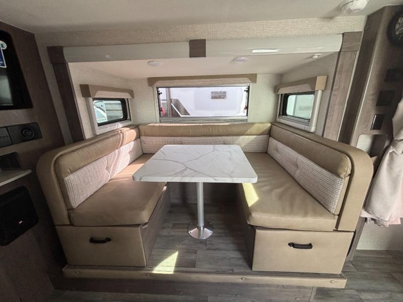 Whether you're a mountain hiker, beach bum, in-town shopper, or early morning fisherman, this Lance travel trailer is for you! A full rear bathroom adds privacy as you get ready in the morning, and the deluxe queen pillowtop innerspring mattress with a bedspread and two LED reading lights is at the other end of the trailer. This bed can be sectioned off by drawing the privacy curtain, and the U-shaped dinette will provide sleeping accommodations for two more people. If you prefer, you can even change out the bed for the optional convertible sofa bed. Each person will benefit from a hot meal prepared in the kitchen on the stainless steel three-burner range or you can choose the optional convection/micro-air fryer.
