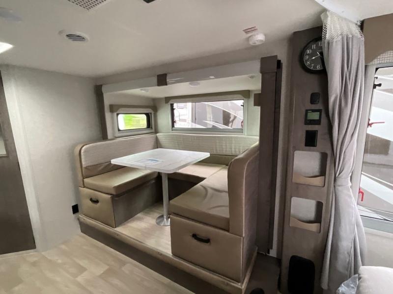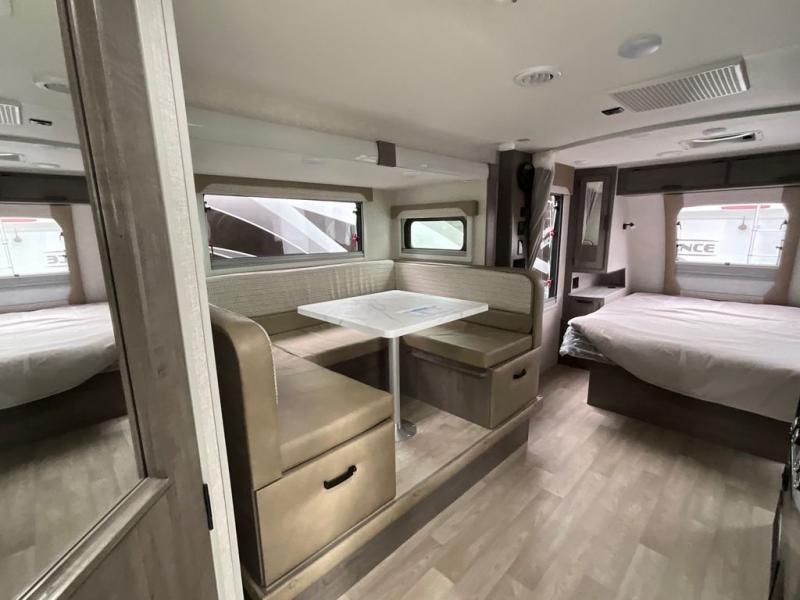 The main difference between this Lance travel trailer and model 1985 is that this unit offers you more storage space in the back in place of the full rear bath! The bathroom has a dual-pane skylight to let in natural sunlight as you get ready in the morning, and the deluxe queen pillowtop innerspring mattress with a bedspread and two LED reading lights is at the other end of the trailer. This bed can be sectioned off by drawing the privacy curtain, and the U-shaped dinette will provide sleeping accommodations for two more people. If you prefer, you can even change out the bed for the optional convertible sofa bed. Each person will benefit from a hot meal prepared in the kitchen on the stainless steel three-burner range!