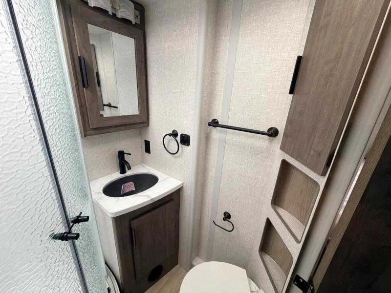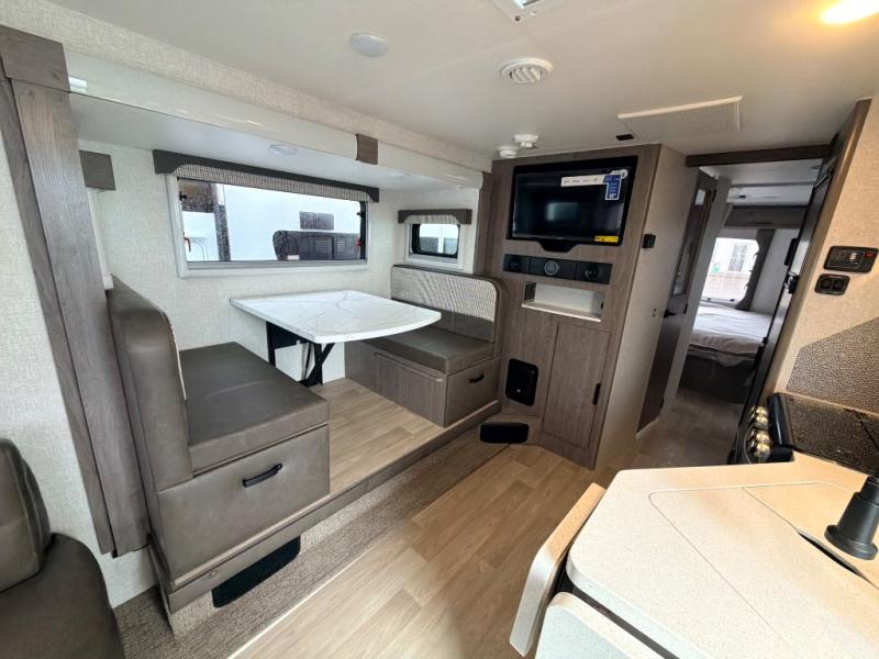 You can take this Lance travel trailer to any vacation you have planned, whether that is a lakeside retreat or a mountainous base camp. The front queen bed is a part of a semi-private bedroom when you pull the privacy curtain closed. The two swivel rockers provide you with a comfortable place to relax, and you can choose to add an optional TV if you want to enjoy movie nights. The booth dinette will serve as an excellent dining location, and it can also provide a bed for another camper if you reposition it. The full bath features a radius shower, toilet and sink which is great so that you don't have to use the public facilities when you camp. There is also a full separating door between the living and sleeping/lavatory space!