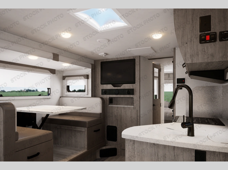 You can take this Lance travel trailer to any vacation you have planned, whether that is a lakeside retreat or a mountainous base camp. The front queen bed is a part of a semi-private bedroom when you pull the privacy curtain closed. The two swivel rockers provide you with a comfortable place to relax, and you can choose to add an optional TV if you want to enjoy movie nights. The booth dinette will serve as an excellent dining location, and it can also provide a bed for another camper if you reposition it. The full bath features a radius shower, toilet and sink which is great so that you don't have to use the public facilities when you camp. There is also a full separating door between the living and sleeping/lavatory space!