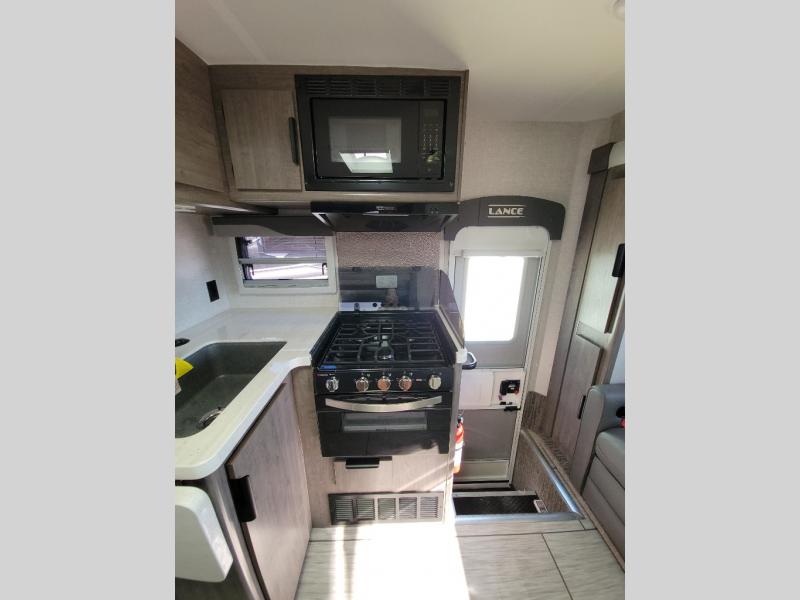 This luxurious Lance truck camper is the most spacious and amenity-packed camper that Lance designs, and it comes with enough room to sleep six people during any adventure between the sofa sleeper, the cab-over queen-size bed, and the booth dinette. You will certainly appreciate the extra space that the "Super Slide" brings to this camper plus the rear wall slide, and since this unit comes with a fully equipped kitchen, you will find it easy to prepare dinner each evening while using the stainless steel three-burner range top. Not only does this camper come with a dry bath, but it also contains a skylight which allows the rays of sunlight to stream through like the giant windows provide.
