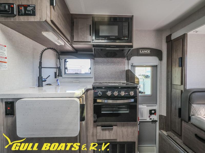 There's no better time than now to start camping in a Lance truck camper! Each model is constructed with a full aluminum frame, a one-piece roof membrane, and block foam insulation throughout to enjoy four seasons of camping. You'll appreciate a keyless entry, an exterior shower, electric remote camper jacks, and eye-catching mountain scene graphics. Inside, there are flat panel cabinet doors, Euro-ply non-toxic cabinet construction, a combo blackout screen and shade, plus a convenient key hanger. There is also a dual pane bath skylight, a solid surface galley countertop, a pop-up charging tower, plus many more interior comforts. And don't forget to check out the select optional features available to further customize your truck camper!