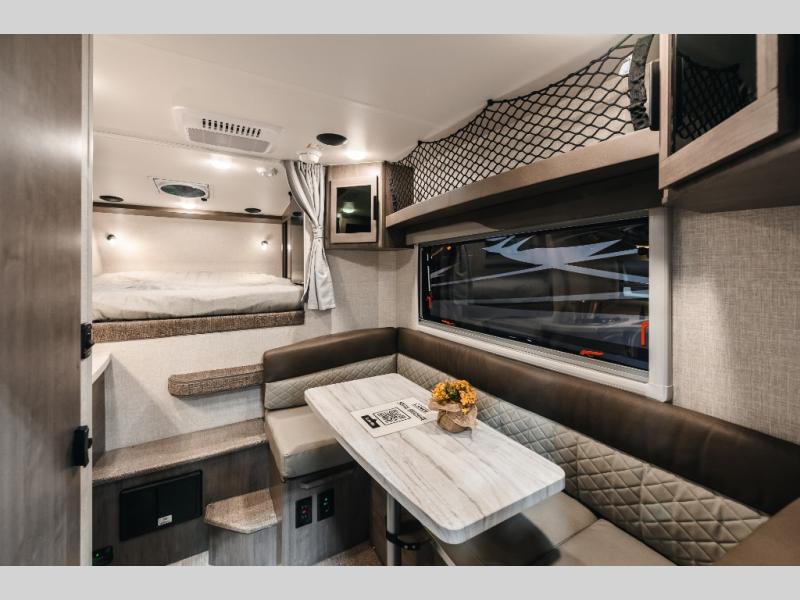 There's no better time than now to start camping in a Lance truck camper! Each model is constructed with a full aluminum frame, a one-piece roof membrane, and block foam insulation throughout to enjoy four seasons of camping. You'll appreciate a keyless entry, an exterior shower, electric remote camper jacks, and eye-catching mountain scene graphics. Inside, there is Lite-Ply cabinet construction, an entry door pull shade, a dual pane bath skylight, and a solid surface galley countertop to name a few comforts. And don't forget to check out the select optional features available to further customize your truck camper!