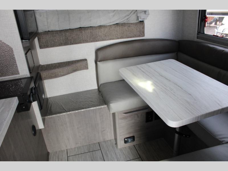 There's no better time than now to start camping in a Lance truck camper! Each model is constructed with a full aluminum frame, a one-piece roof membrane, and block foam insulation throughout to enjoy four seasons of camping. You'll appreciate a keyless entry, an exterior shower, electric remote camper jacks, and eye-catching mountain scene graphics. Inside, there is Lite-Ply cabinet construction, an entry door pull shade, a dual pane bath skylight, and a solid surface galley countertop to name a few comforts. And don't forget to check out the select optional features available to further customize your truck camper!