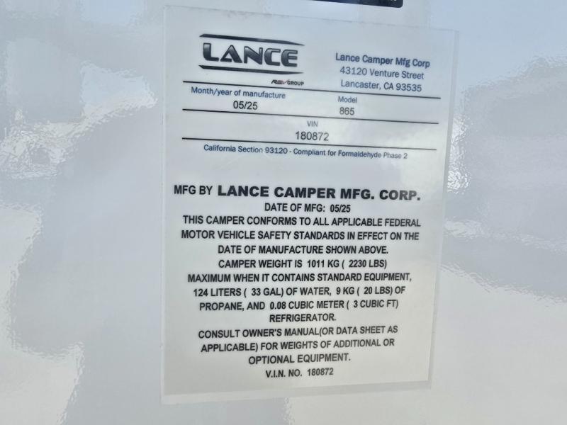 New 2026 Lance Lance Truck Campers 865 Truck Camper
