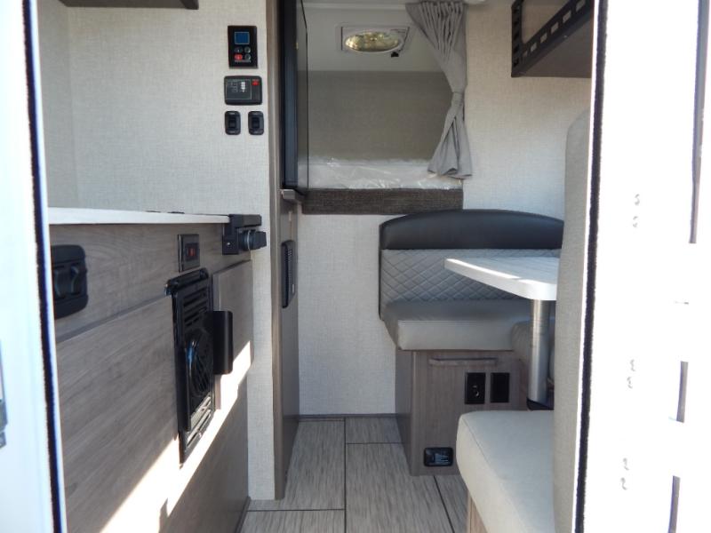 With any Squire Truck Camper by Lance, you will enjoy superior quality with a great value! They are constructed with aluminum framed walls, block foam insulation, and Azdel interior walls for added durability. There is lite-ply cabinet construction inside, along with Surf-X suedo solid surface lightweight countertops, overhead Molle panel storage space, and 12V/USB charging ports in the dinette and cab-over areas for your electronics. To further customize your truck camper, consider adding the optional air conditioner, backup camera, electric side awning, and more available options!