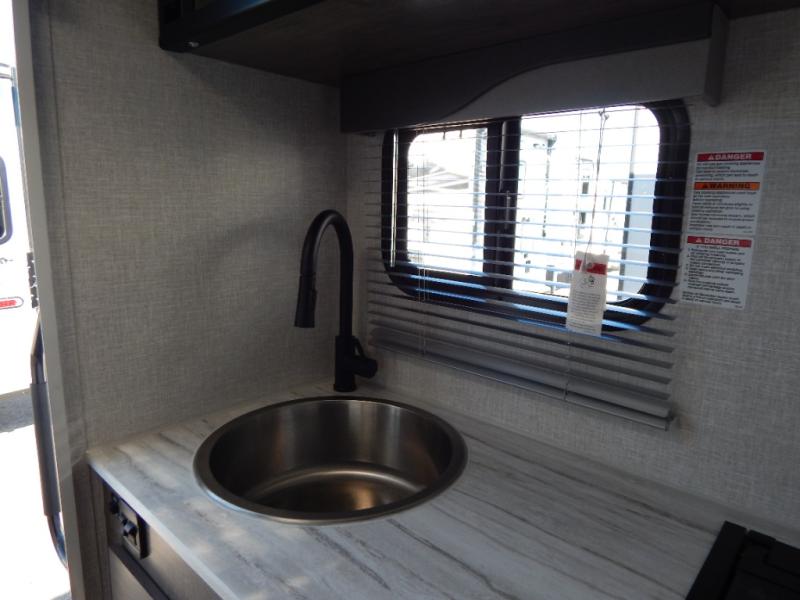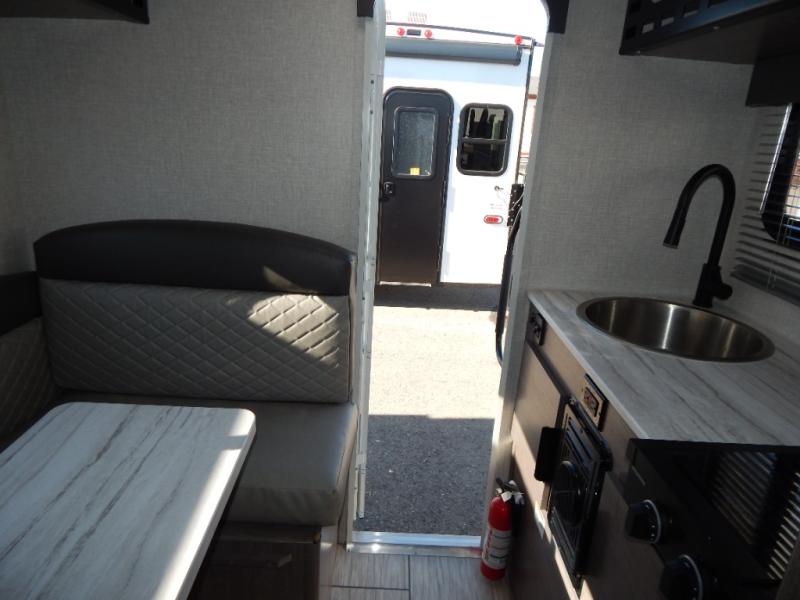 Simple camping has never been easier than with this truck camper designed for mid-size trucks! Once you've set up camp for the night, you can make dinner on the two-burner cooktop, freshen up with the single round sink, and store leftovers in the 3-cu. ft. 12V refrigerator. The U-shaped dinette will provide a place to dine together and even let a guest or two stay over. An optional Porta-Potti can be added so you don't have to leave your camper in the middle of the night, and you can also choose to add the optional exterior zero shower that provides an enclosure for your exterior wash station!