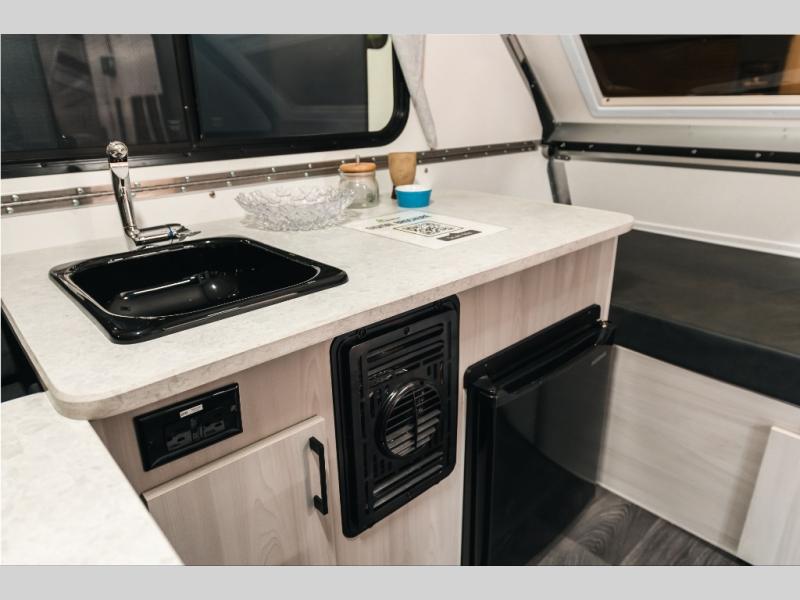 This lightweight truck camper is perfect for short bed trucks. The compact galley includes a two-burner cooktop, a stainless-steel sink, and a 12V refrigerator to keep your food fresh. A dinette provides a place to dine together or play games in the evening, and there is Molle-backed cabinet framing for extra storage. You will appreciate the wet bath with ducted heat and foot flush marine toilet, so you don't have to leave your camper in the middle of the night. A queen-size bed will provide a great night's rest, while the reading lights let you stay up late with a book!