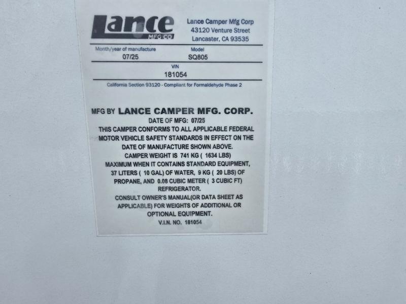 New 2026 Lance Squire Truck Campers SQ805 Truck Camper