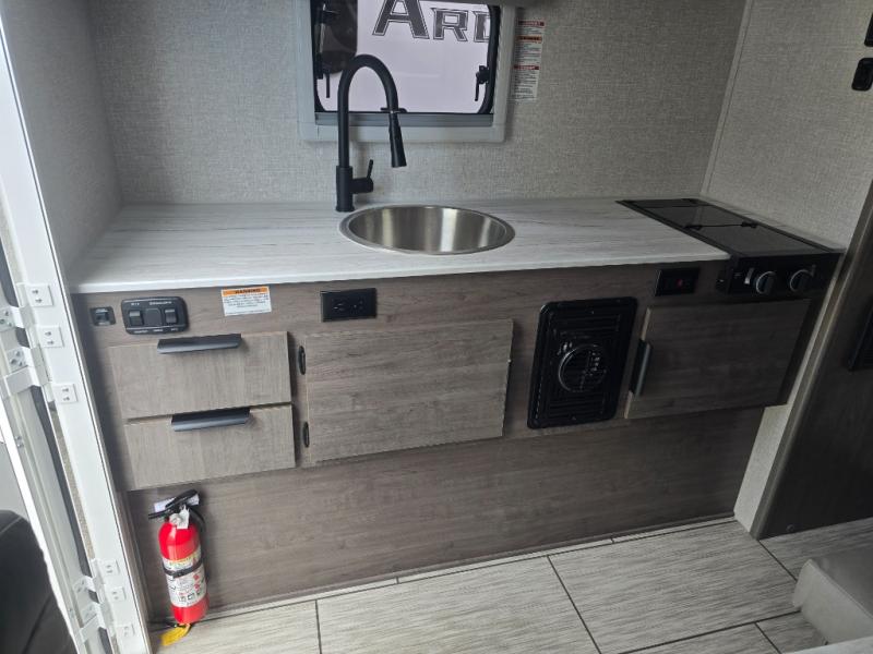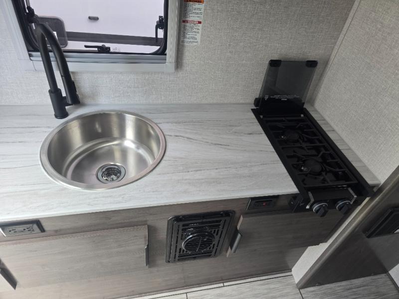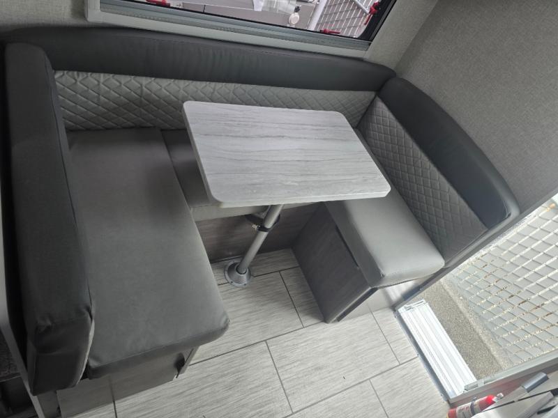 Simple camping has never been easier than with this truck camper! Once you've set up camp for the night, you can make dinner on the two burner cooktop, freshen up with the high spout galley faucet, and store leftovers in the 3.3 cu. ft. 12V refrigerator. You will also appreciate the ample counter space here! The U-shaped dinette will provide a place to dine together and even let a guest or two stay over. A Porta-Potti comes standard so you don't have to leave your camper in the middle of the night, and you can choose to add the optional exterior zero shower that provides an enclosure for your exterior wash station!