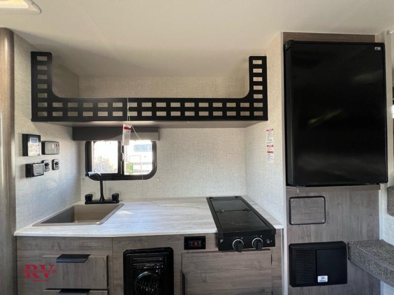 Simple camping has never been easier than with this truck camper! Once you've set up camp for the night, you can make dinner on the two burner cooktop, freshen up with the high spout galley faucet, and store leftovers in the 3.3 cu. ft. 12V refrigerator. You will also appreciate the ample counter space here! The U-shaped dinette will provide a place to dine together and even let a guest or two stay over. This unit also includes a wet bath for even more comfort and convenience!