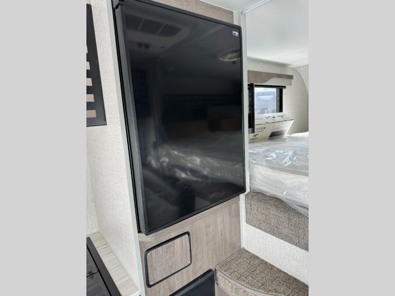 Simple camping has never been easier than with this truck camper! Once you've set up camp for the night, you can make dinner on the two-burner cooktop, freshen up with the high spout galley faucet, and store leftovers in the 3-cu. ft. 12V refrigerator. You will also appreciate the ample counter space here! The U-shaped dinette will provide a place to dine together and even let a guest or two stay over. This unit also includes a wet bath for even more comfort and convenience!