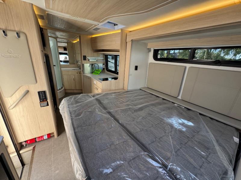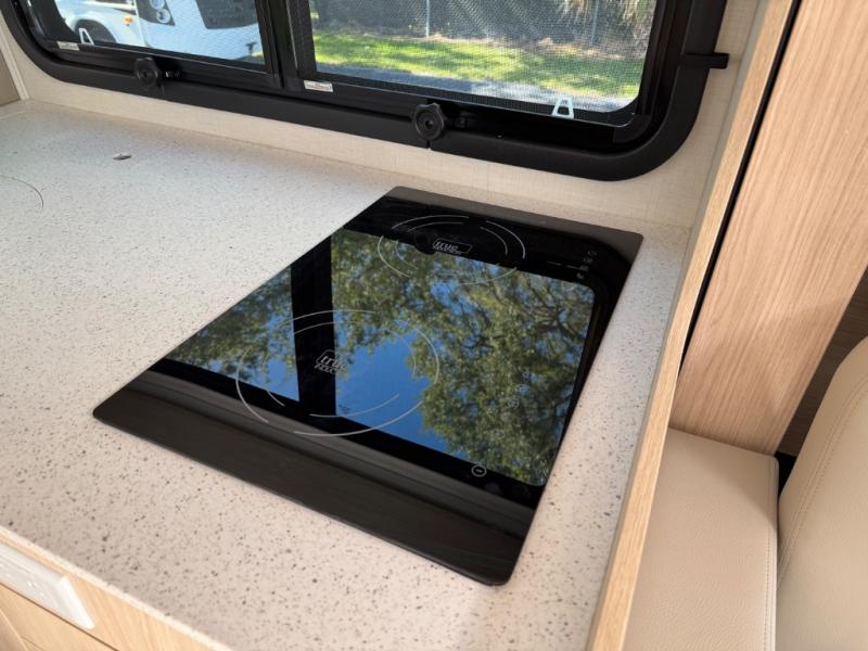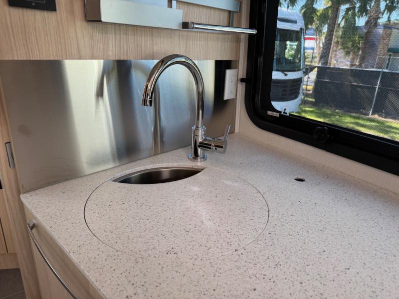 Each Unity Class B+ diesel motorhome by Leisure Travel sits on a durable Mercedes-Benz Sprinter 3500 dual rear wheel chassis with a 2.0-L Turbocharged I-4 diesel engine to power your adventures. The powder coated steel undercarriage support structure and vacuum-bonded construction provide a coach that will last for years, and there are eight sleek exterior paint options to make the coach your own. You'll love driving the Unity with its electronic stability control, adaptive cruise control, 9-speed automatic transmission with quieter noise levels and more comfort. There is even a digital mirror with sharp high-resolution that can be switched between convectional display and digital display for convenience. The luxurious interior includes Ultraleather furniture, a contoured solid surface Corian countertop in the kitchen, new decor options, plus many more comforts. And all of your power need will be met with 270-Ah, 12V Lithium coach batteries with an internal heating system, plus a 3000W pure sine inverter and a 30 Amp power cord. If you choose the optional 60th Anniversary Edition, you will enjoy the Diamond White exterior paint, diamond-quilted upholstery, Cool Ice Ultrafabrics, matte black hardware, and more elegant features that are exclusive to this package!