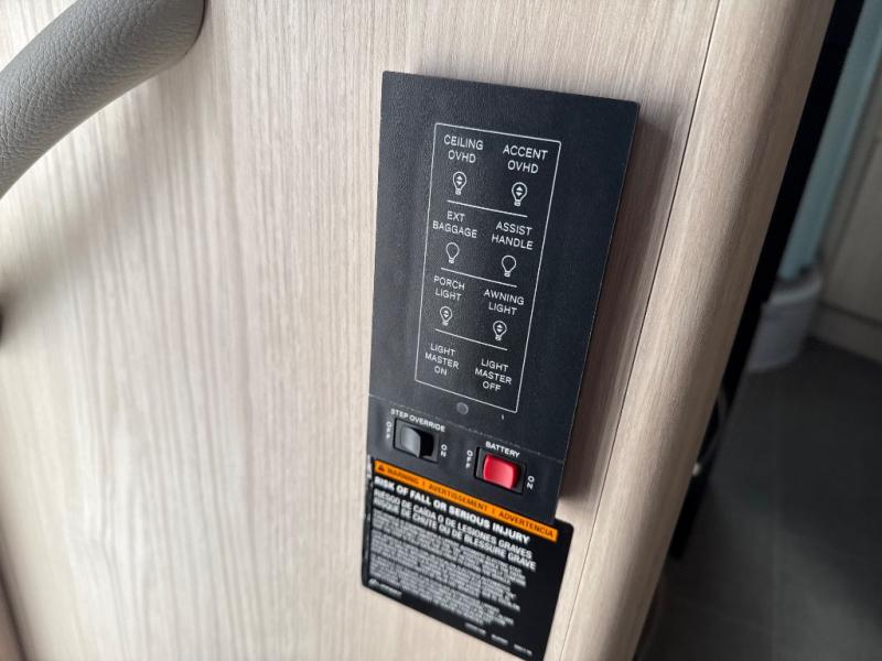 Traveling will be convenient and comfortable with this versatile Murphy bed and redesigned leisure lounge, which includes dual reclining chairs, an updated dinette table and a large panoramic window! At night, the lounge seating is hidden as you flip-down the Murphy bed for a comfortable night's rest. In the morning, tuck it all away to bring back your living space. You will also enjoy the convenient kitchen amenities in place so you can easily whip up a meal or snack while you are stopped, and for overnight you can get refreshed for a new day in the rear bath featuring a radius shower with a skylight, a sink, and closet space for your things.