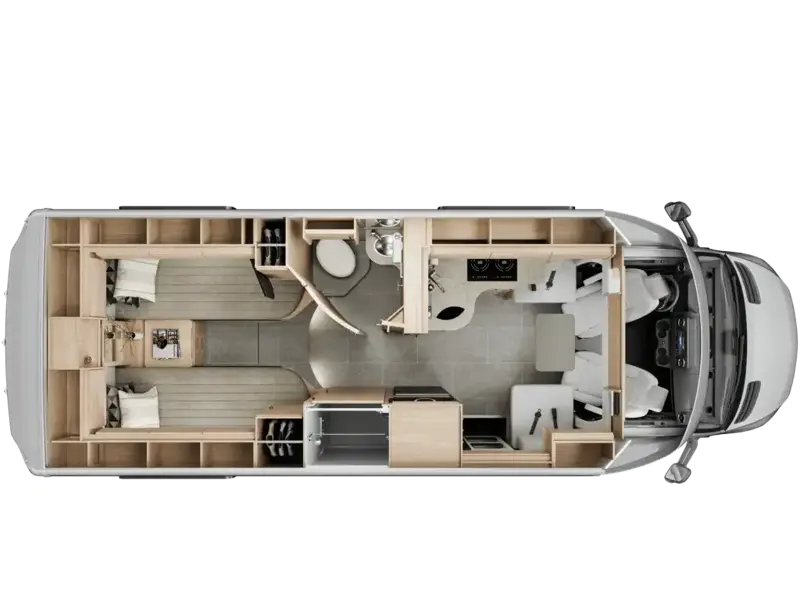The Unity Twin Bed is ready for whatever the day brings, from morning to night or even an indulgent afternoon nap. With the choice of a full-sized or twin beds, a great night’s sleep or a comfortable place to relax is ready when you are. At the front of the coach, find a comfortable living area with a removable dinette table and spacious galley. Completed with a three-piece dry bath and extensive storage throughout, the Unity Twin Bed makes an ideal touring coach for those extended journeys.