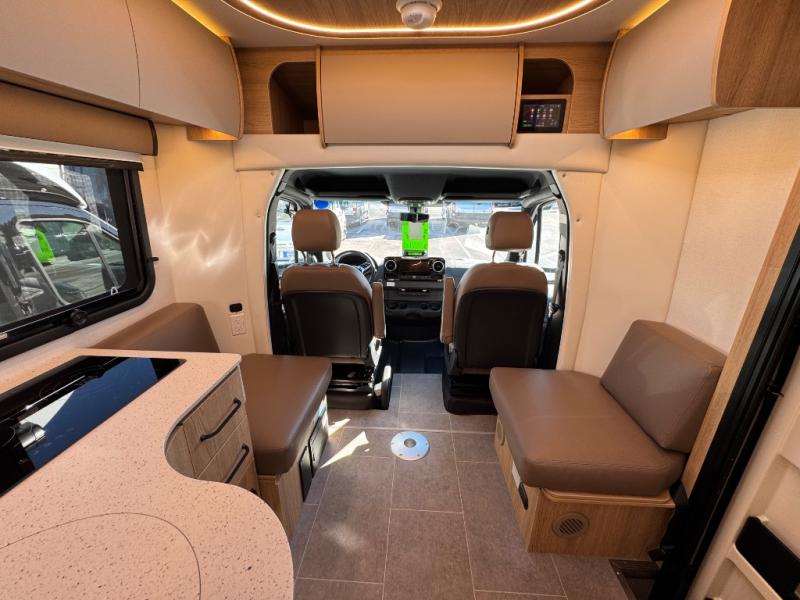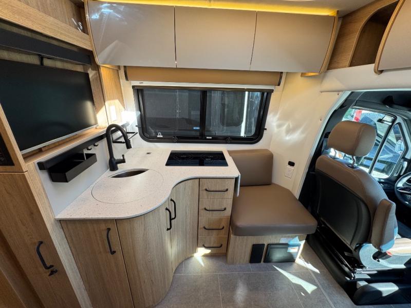 Each Unity Class B+ diesel motorhome by Leisure Travel sits on a durable Mercedes-Benz Sprinter 3500 dual rear wheel chassis with a 2.0-L Turbocharged I-4 diesel engine to power your adventures. The powder coated steel undercarriage support structure and vacuum-bonded construction provide a coach that will last for years, and there are sleek exterior paint options to make the coach your own. You'll love driving the Unity with its electronic stability control, adaptive cruise control, 9-speed automatic transmission with quieter noise levels and more comfort. The luxurious interior includes Ultrafabrics, a contoured solid surface Corian countertop in the kitchen, modern cabinetry finishes, plus many more comforts. And all of your power need will be met with 270-Ah 12V Lithium coach batteries with an internal heating system, plus a 3000W pure sine inverter and a 30 Amp power cord.