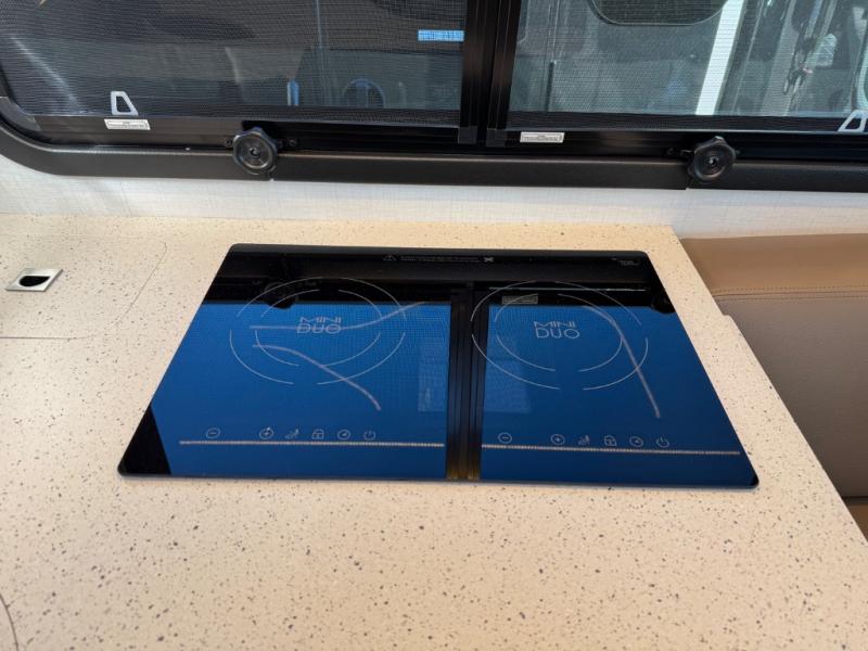 Comfortable and versatile features allow you to travel the way you like in this Unity Class B+ diesel motorhome. You have plenty of choices on how you want to sleep and how you would like to dine. Each night, you can sleep separately from your spouse on one of the two twin-size beds or convert the twins into one king-size bed for more space together. Even the bathroom area is multi-functional because of its separate lavatory from the enclosed shower, and the adjustable front seating area is handy for dining, optional sleeping, or playing a card game with the family. The induction cooktop makes it easy to make your delicious meals, and if you have any leftovers, then you can store them inside the compressor refrigerator.