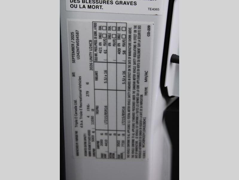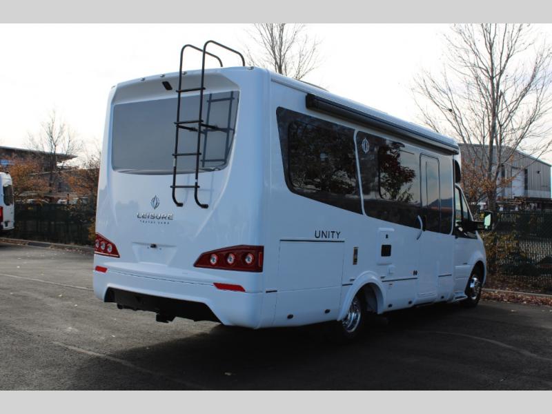 Each Unity Class B+ diesel motorhome by Leisure Travel sits on a durable Mercedes-Benz Sprinter 3500 dual rear wheel chassis with a 2.0-L Turbocharged I-4 diesel engine to power your adventures. The powder coated steel undercarriage support structure and vacuum-bonded construction provide a coach that will last for years, and there are eight sleek exterior paint options to make the coach your own. You'll love driving the Unity with its electronic stability control, adaptive cruise control, 9-speed automatic transmission with quieter noise levels and more comfort. There is even a digital mirror with sharp high-resolution that can be switched between convectional display and digital display for convenience. The luxurious interior includes Ultraleather furniture, a contoured solid surface Corian countertop in the kitchen, new decor options, plus many more comforts. And all of your power need will be met with 270-Ah 12V Lithium coach batteries with an internal heating system, plus a 3000W pure sine inverter and a 30 Amp power cord. If you choose the optional 60th Anniversary Edition, you will enjoy the Diamond White exterior paint, diamond-quilted upholstery, Cool Ice Ultrafabrics, matte black hardware, and more elegant features that are exclusive to this package!