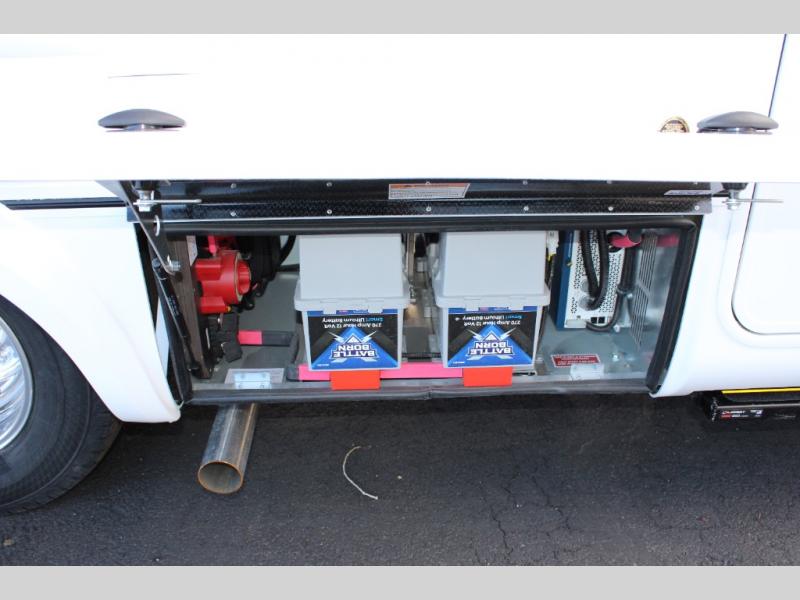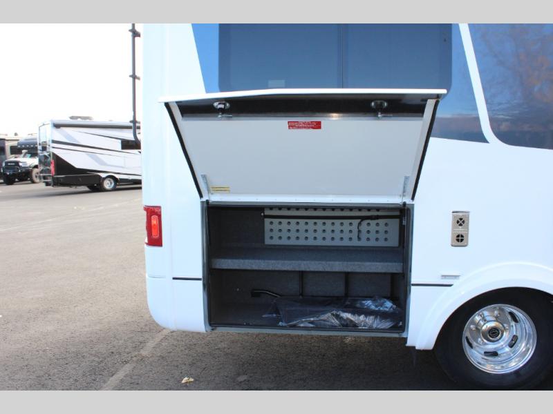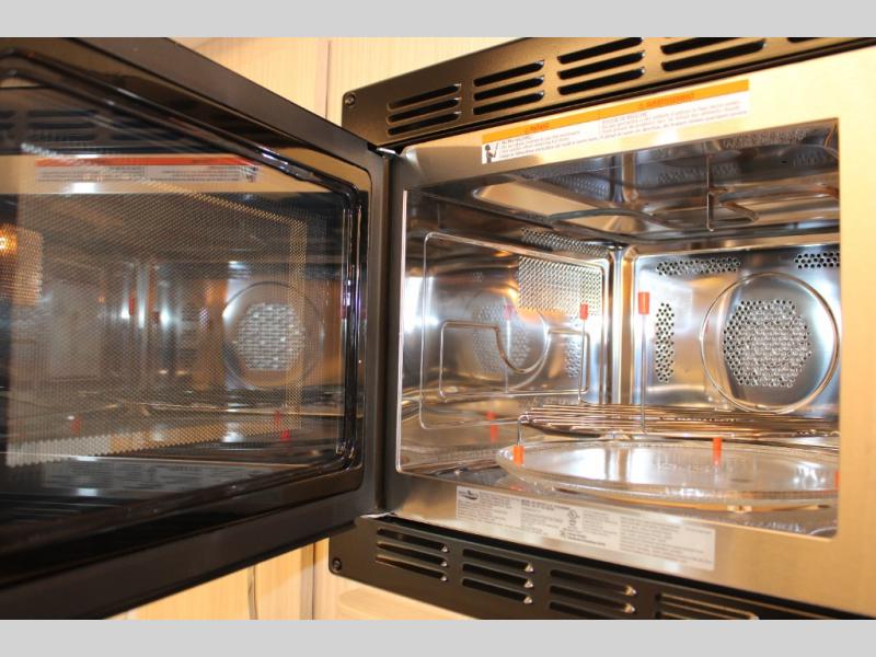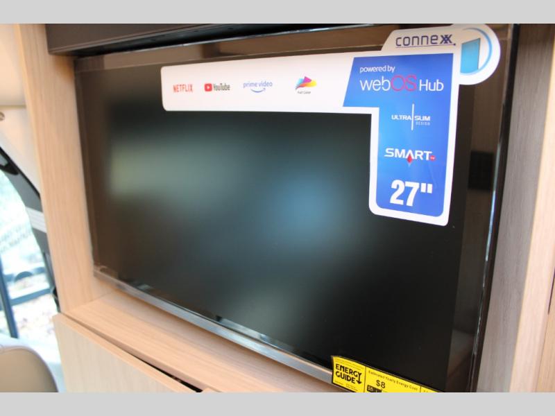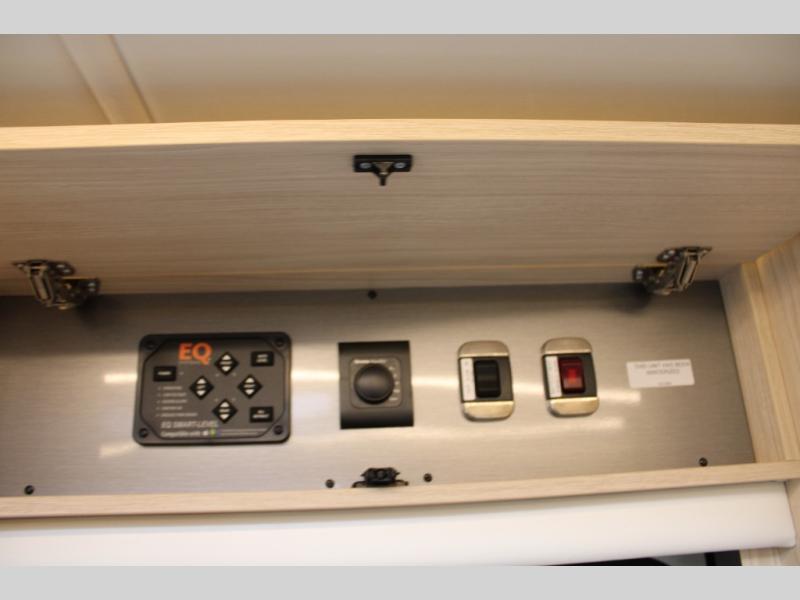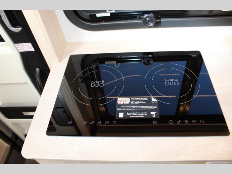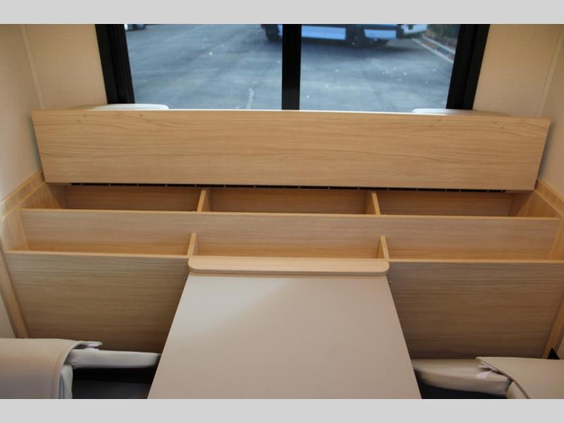 You can sleep four comfortably in this coach thanks to the 52" x 76" rear corner bed, and the dinette+, or you might want to choose the optional leisure lounge. The galley includes a stainless steel sink, a two burner cooktop, plus a pull-out panty and a 12V compressor refrigerator for food storage. The rear corner bath will allow you to stay clean throughout your many travels, and there is plenty of storage space for your essentials. You will also love the powered box awning with a wind sensor and LED lights for those late-night evenings outdoors with friends.