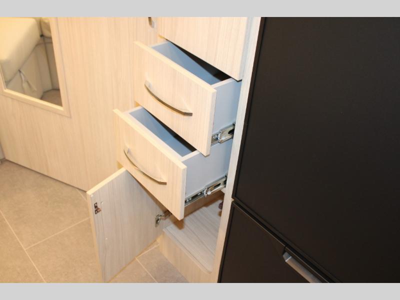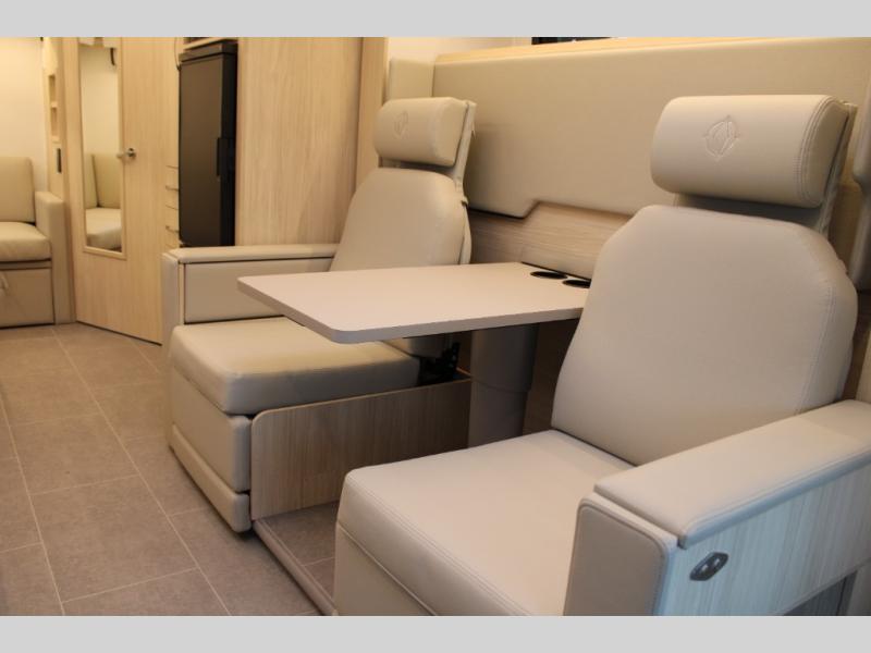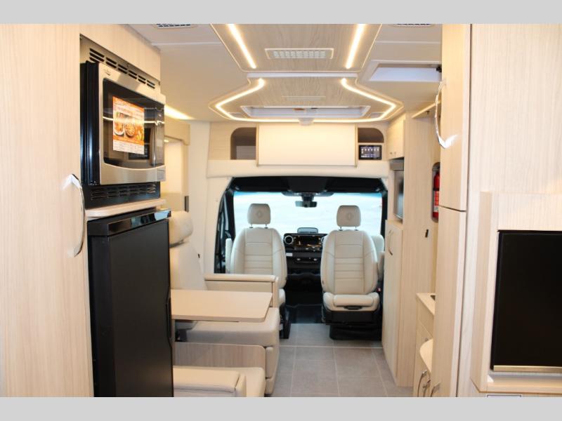 Each Unity Class B+ diesel motorhome by Leisure Travel sits on a durable Mercedes-Benz Sprinter 3500 dual rear wheel chassis with a 2.0-L Turbocharged I-4 diesel engine to power your adventures. The powder coated steel undercarriage support structure and vacuum-bonded construction provide a coach that will last for years, and there are eight sleek exterior paint options to make the coach your own. You'll love driving the Unity with its electronic stability control, adaptive cruise control, 9-speed automatic transmission with quieter noise levels and more comfort. There is even a digital mirror with sharp high-resolution that can be switched between convectional display and digital display for convenience. The luxurious interior includes Ultraleather furniture, a contoured solid surface Corian countertop in the kitchen, new decor options, plus many more comforts. And all of your power need will be met with 270-Ah, 12V Lithium coach batteries with an internal heating system, plus a 3000W pure sine inverter and a 30 Amp power cord. If you choose the optional 60th Anniversary Edition, you will enjoy the Diamond White exterior paint, diamond-quilted upholstery, Cool Ice Ultrafabrics, matte black hardware, and more elegant features that are exclusive to this package!