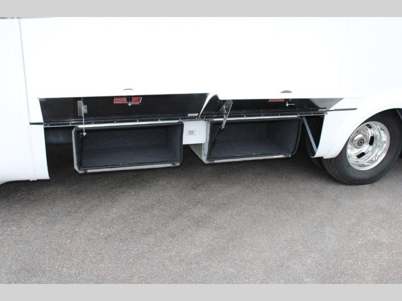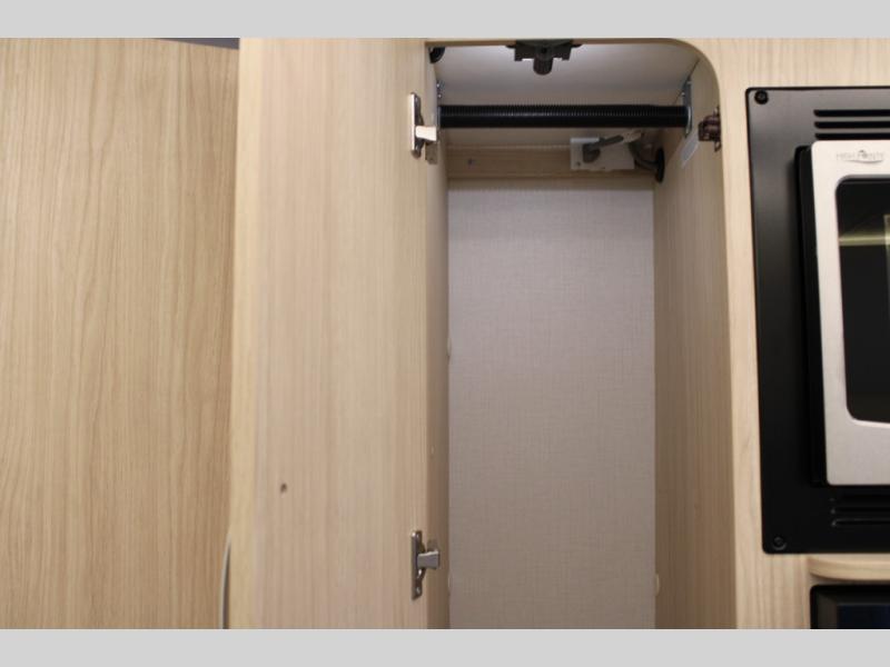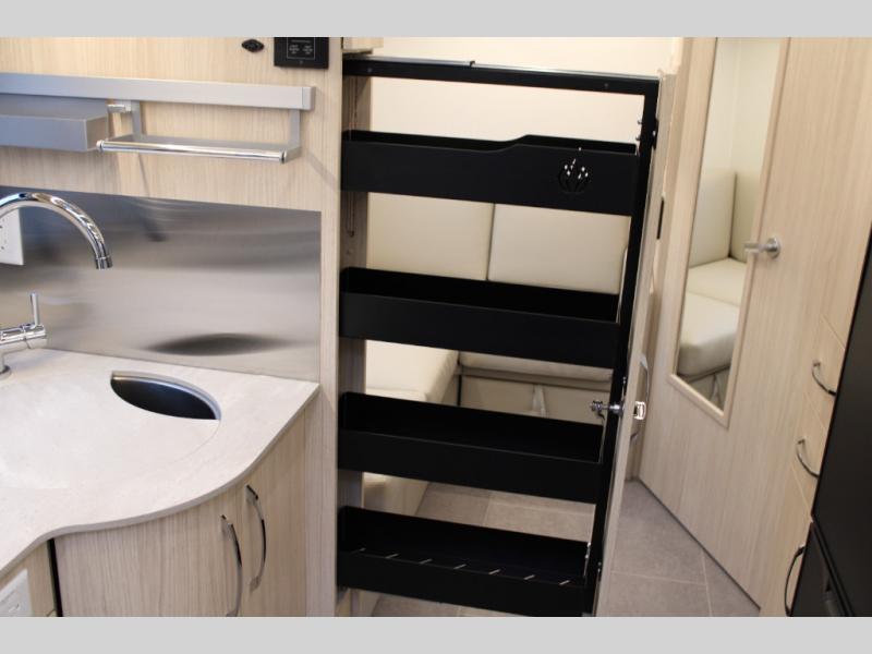 You will be impressed with this Unity Class B+ diesel motorhome because of the unique rear living space that has a sectional sofa, adjustable ottoman, and flexible bathroom door that will fold inward or outward depending on where you need the extra space. With a wardrobe, a bathroom medicine cabinet, and a large pull-out pantry, there is no doubt that you will be able to find storage space for all of your belongings, and having two living areas, a Murphy bed for nighttime, and a flush-mount LP cooktop to make meals will let you travel for however long you like.