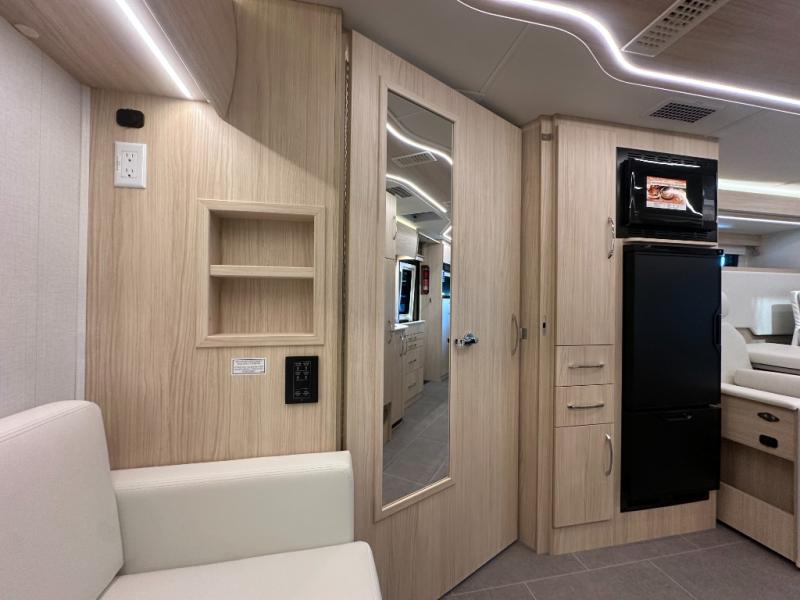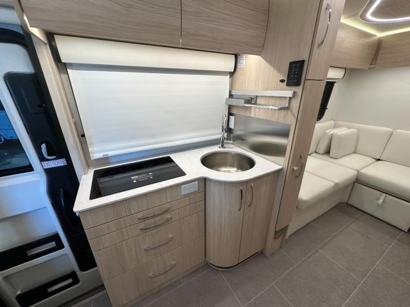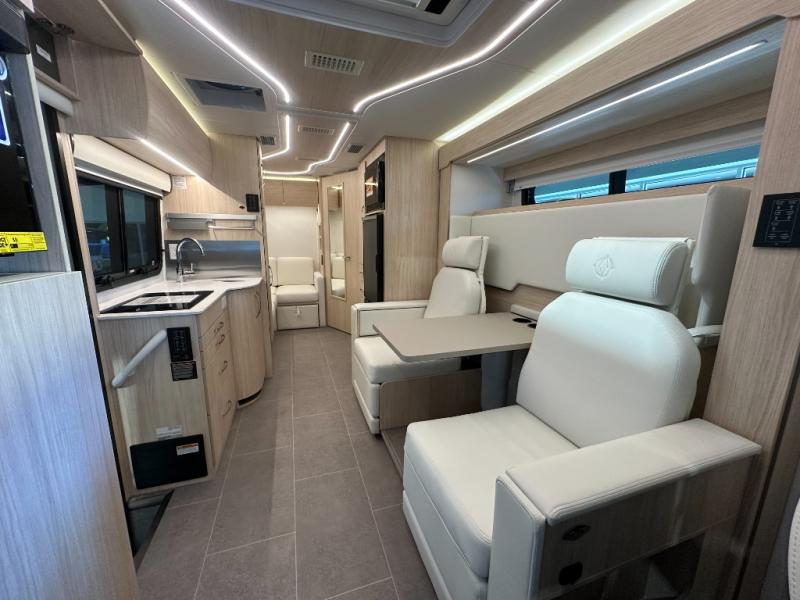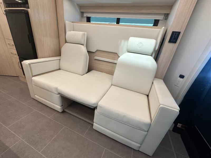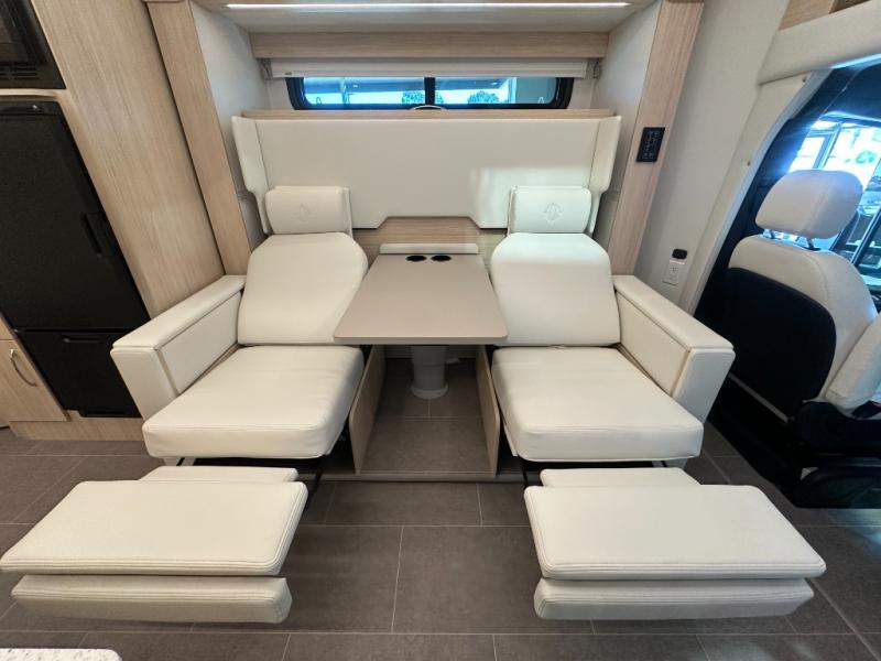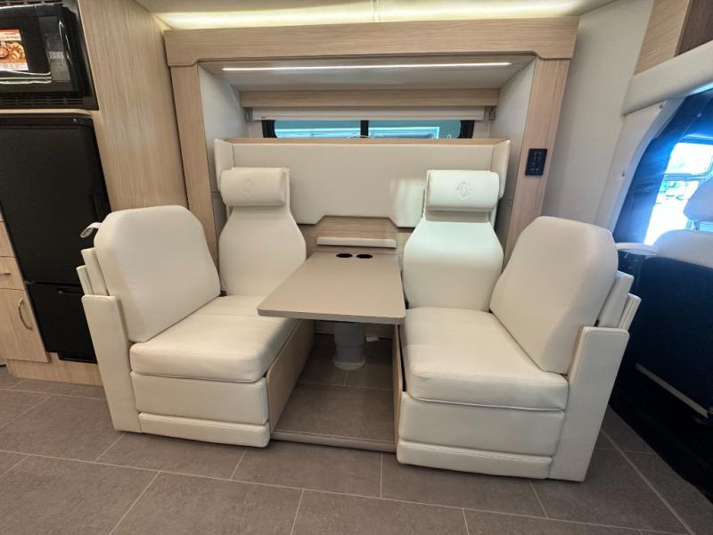 Each Unity Class B+ diesel motorhome by Leisure Travel sits on a durable Mercedes-Benz Sprinter 3500 dual rear wheel chassis with a 2.0-L Turbocharged I-4 diesel engine to power your adventures. The powder coated steel undercarriage support structure and vacuum-bonded construction provide a coach that will last for years, and there are eight sleek exterior paint options to make the coach your own. You'll love driving the Unity with its electronic stability control, adaptive cruise control, 9-speed automatic transmission with quieter noise levels and more comfort. There is even a digital mirror with sharp high-resolution that can be switched between convectional display and digital display for convenience. The luxurious interior includes Ultraleather furniture, a contoured solid surface Corian countertop in the kitchen, new decor options, plus many more comforts. And all of your power need will be met with 270-Ah, 12V Lithium coach batteries with an internal heating system, plus a 3000W pure sine inverter and a 30 Amp power cord. If you choose the optional 60th Anniversary Edition, you will enjoy the Diamond White exterior paint, diamond-quilted upholstery, Cool Ice Ultrafabrics, matte black hardware, and more elegant features that are exclusive to this package!