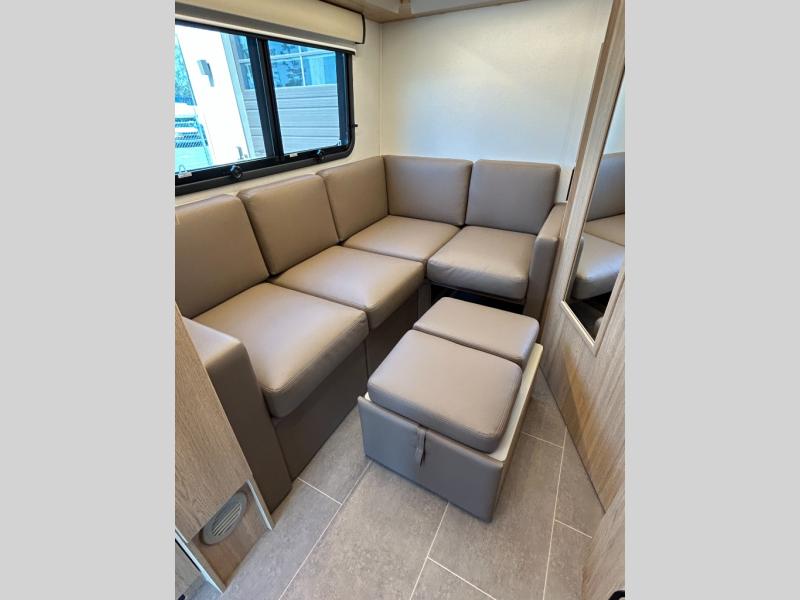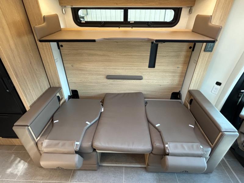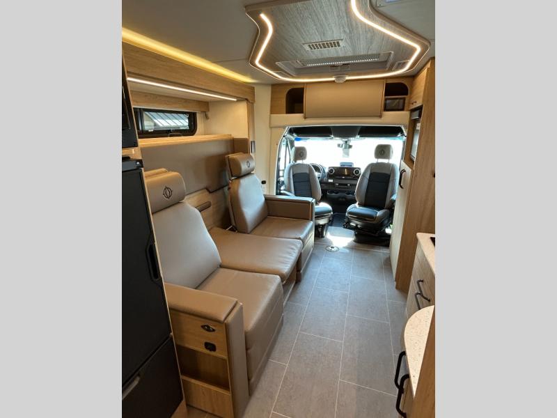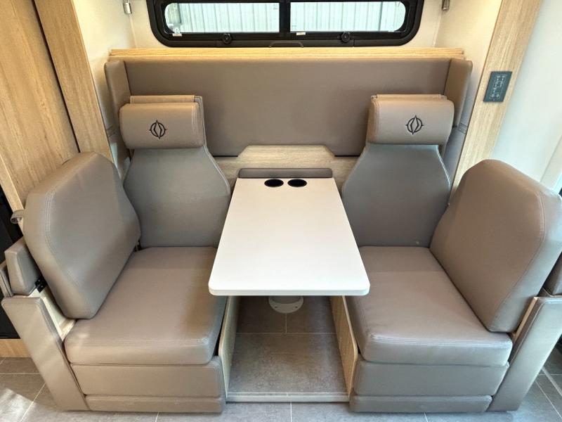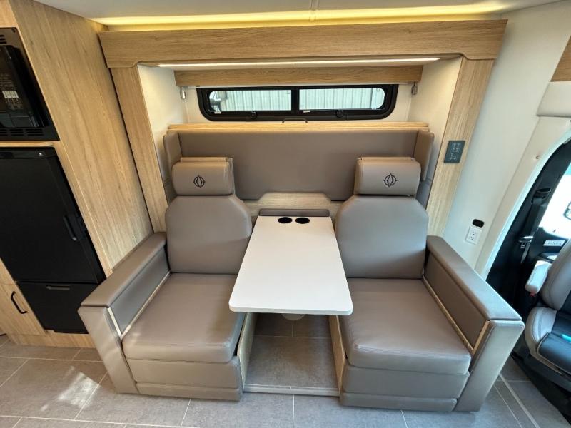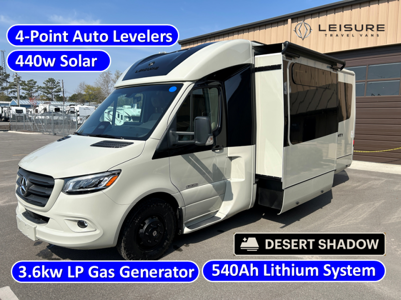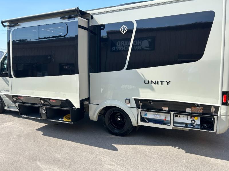 Each Unity Class B+ diesel motorhome by Leisure Travel sits on a durable Mercedes-Benz Sprinter 3500 dual rear wheel chassis with a 2.0-L Turbocharged I-4 diesel engine to power your adventures. The powder coated steel undercarriage support structure and vacuum-bonded construction provide a coach that will last for years, and there are sleek exterior paint options to make the coach your own. You'll love driving the Unity with its electronic stability control, adaptive cruise control, 9-speed automatic transmission with quieter noise levels and more comfort. The luxurious interior includes Ultrafabrics, a contoured solid surface Corian countertop in the kitchen, modern cabinetry finishes, plus many more comforts. And all of your power need will be met with 270-Ah 12V Lithium coach batteries with an internal heating system, plus a 3000W pure sine inverter and a 30 Amp power cord. The optional Desert Shadow Edition can be added to any Unity floorplan to give you a more modern design inspired by the earthly tones and striking silhouettes. This package includes an exclusive canyon exterior paint with black accents, exclusive Desert Shadow badging, matte black hardware, Dune Ultrafabrics and more; see dealer for more details!