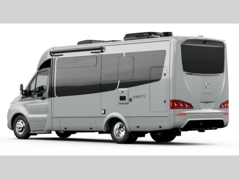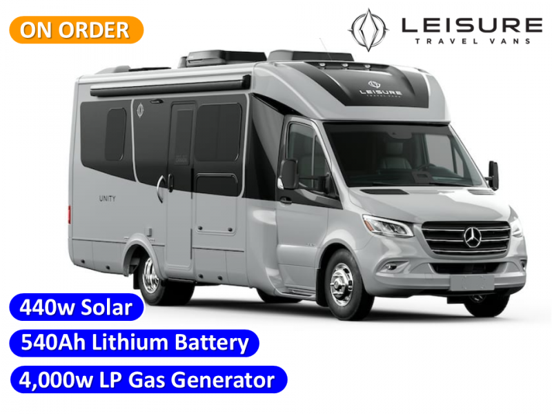 Each Unity Class B+ diesel motorhome by Leisure Travel sits on a durable Mercedes-Benz Sprinter 3500 dual rear wheel chassis with a 2.0-L Turbocharged I-4 diesel engine to power your adventures. The powder coated steel undercarriage support structure and vacuum-bonded construction provide a coach that will last for years, and there are eight sleek exterior paint options to make the coach your own. You'll love driving the Unity with its electronic stability control, adaptive cruise control, 9-speed automatic transmission with quieter noise levels and more comfort. There is even a digital mirror with sharp high-resolution that can be switched between conventional display and digital display for convenience. The luxurious interior includes Ultraleather furniture, a contoured solid surface Corian countertop in the kitchen, new decor options, plus many more comforts. And all of your power need will be met with dual 270-Ah, 12V Lithium coach batteries with an internal heating system, plus a 3000W pure sine inverter and a 30 Amp power cord.