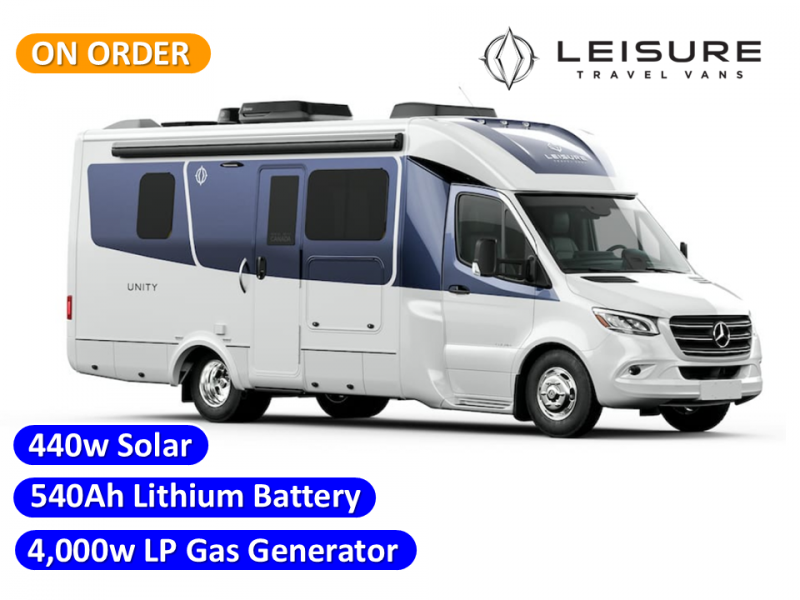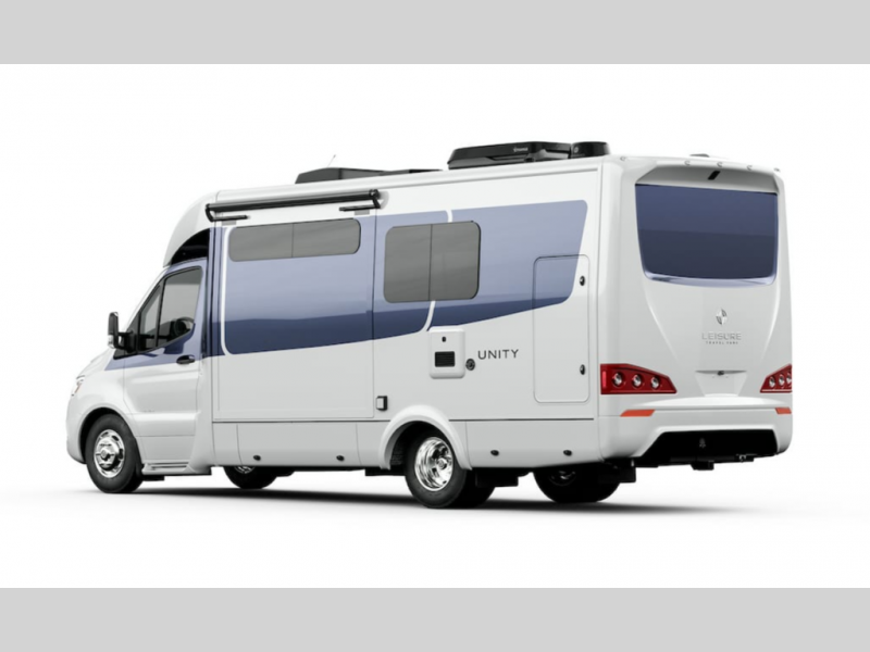 Each Unity Class B+ diesel motorhome by Leisure Travel sits on a durable Mercedes-Benz Sprinter 3500 dual rear wheel chassis with a 2.0-L Turbocharged I-4 diesel engine to power your adventures. The powder coated steel undercarriage support structure and vacuum-bonded construction provide a coach that will last for years, and there are eight sleek exterior paint options to make the coach your own. You'll love driving the Unity with its electronic stability control, adaptive cruise control, 9-speed automatic transmission with quieter noise levels and more comfort. There is even a digital mirror with sharp high-resolution that can be switched between conventional display and digital display for convenience. The luxurious interior includes Ultraleather furniture, a contoured solid surface Corian countertop in the kitchen, new decor options, plus many more comforts. And all of your power need will be met with dual 270-Ah, 12V Lithium coach batteries with an internal heating system, plus a 3000W pure sine inverter and a 30 Amp power cord.