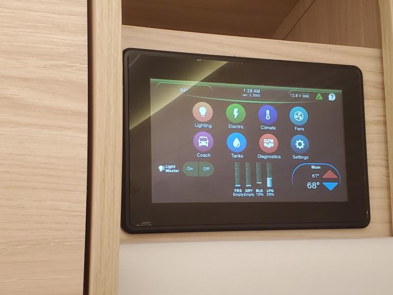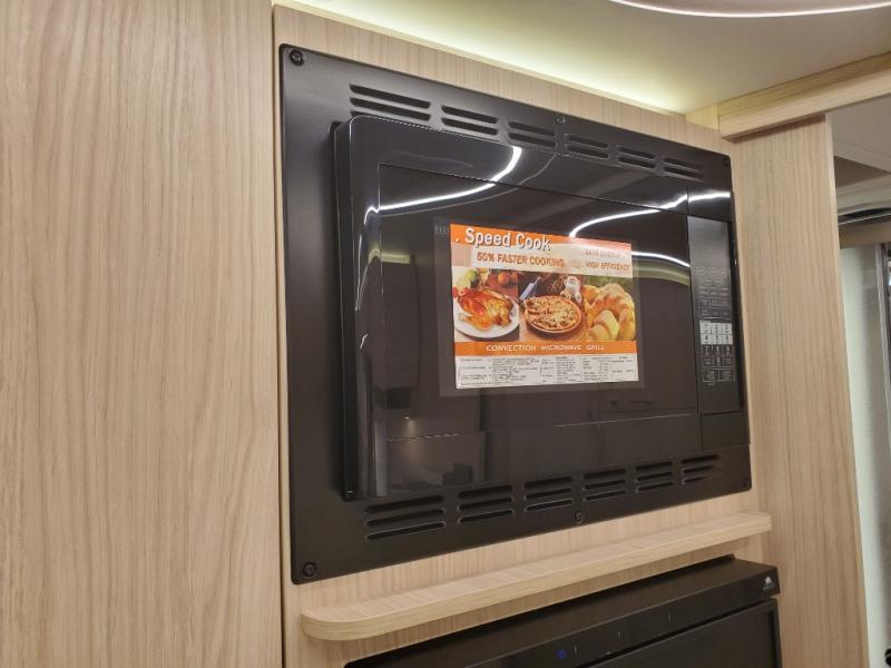 Traveling will be convenient and comfortable with this versatile Murphy bed and redesigned leisure lounge, which includes dual reclining chairs, an updated dinette table and a large panoramic window! At night, the lounge seating is hidden as you flip-down the Murphy bed for a comfortable night's rest. In the morning, tuck it all away to bring back your living space. You will also enjoy the convenient kitchen amenities in place so you can easily whip up a meal or snack while you are stopped, and for overnight you can get refreshed for a new day in the rear bath featuring a radius shower with a skylight, a sink, and closet space for your things.