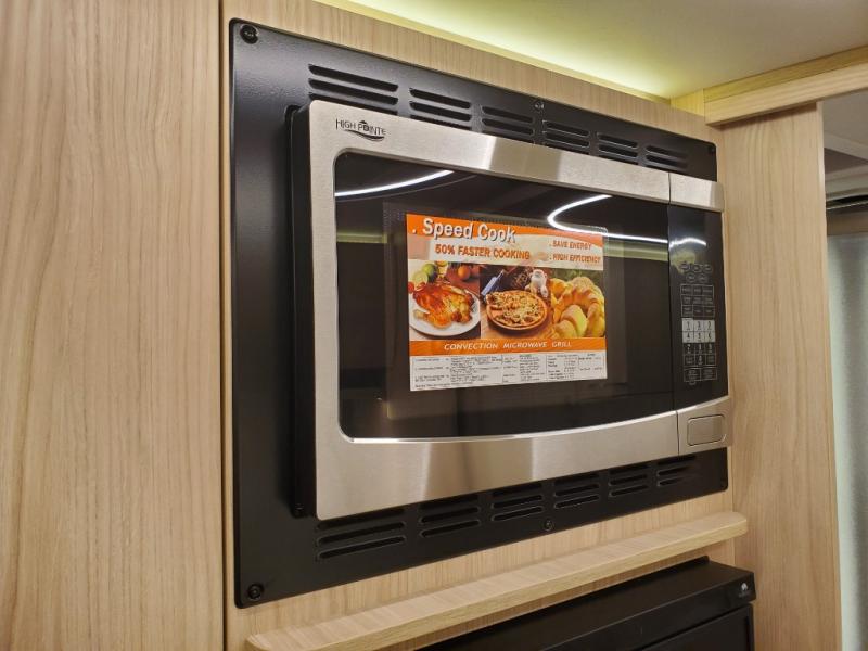 Traveling will be convenient and comfortable with this versatile Murphy bed and redesigned leisure lounge, which includes dual reclining chairs, an updated dinette table and a large panoramic window! At night, the lounge seating is hidden as you flip-down the Murphy bed for a comfortable night's rest. In the morning, tuck it all away to bring back your living space. You will also enjoy the convenient kitchen amenities in place so you can easily whip up a meal or snack while you are stopped, and for overnight you can get refreshed for a new day in the rear bath featuring a radius shower with a skylight, a sink, and closet space for your things.