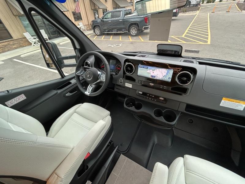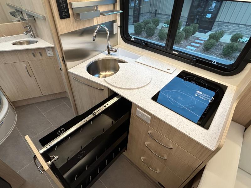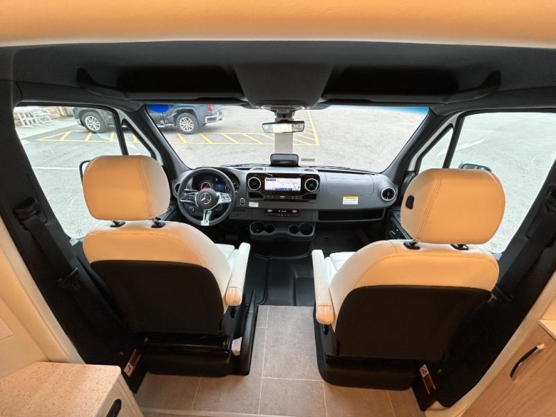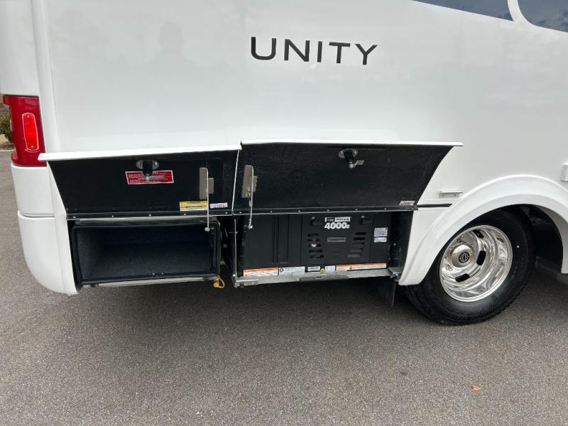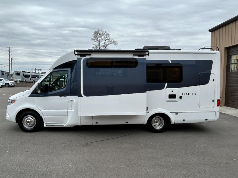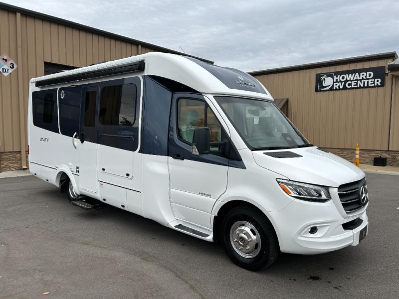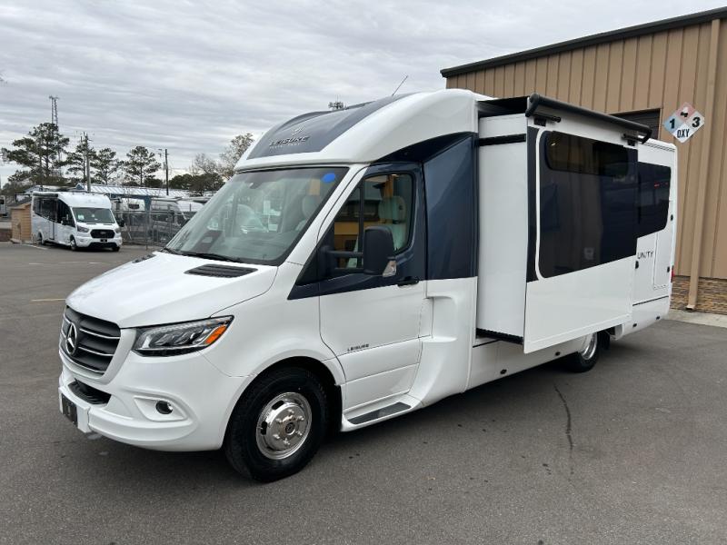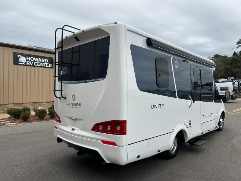 Each Unity Class B+ diesel motorhome by Leisure Travel sits on a durable Mercedes-Benz Sprinter 3500 dual rear wheel chassis with a 2.0-L Turbocharged I-4 diesel engine to power your adventures. The powder coated steel undercarriage support structure and vacuum-bonded construction provide a coach that will last for years, and there are sleek exterior paint options to make the coach your own. You'll love driving the Unity with its electronic stability control, adaptive cruise control, 9-speed automatic transmission with quieter noise levels and more comfort. The luxurious interior includes Ultrafabrics, a contoured solid surface Corian countertop in the kitchen, modern cabinetry finishes, plus many more comforts. And all of your power need will be met with the optioned dual 270-Ah 12V Lithium coach batteries with an internal heating system, plus a 3000W pure sine inverter and a 30 Amp power cord.