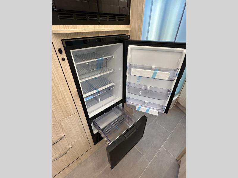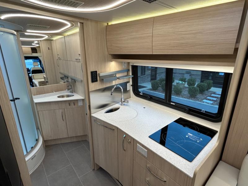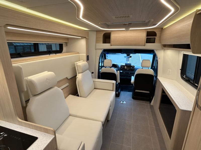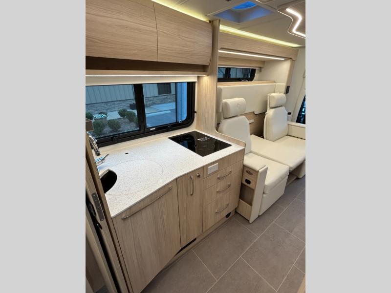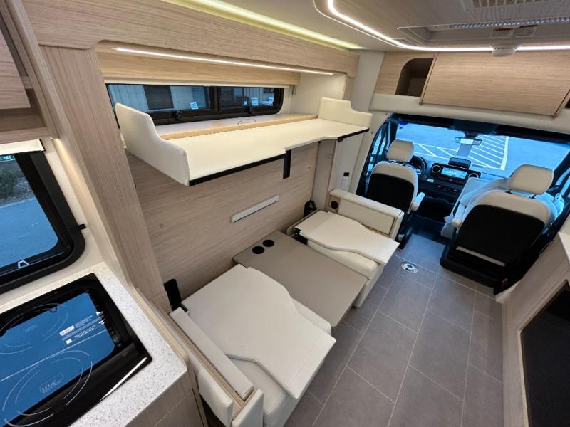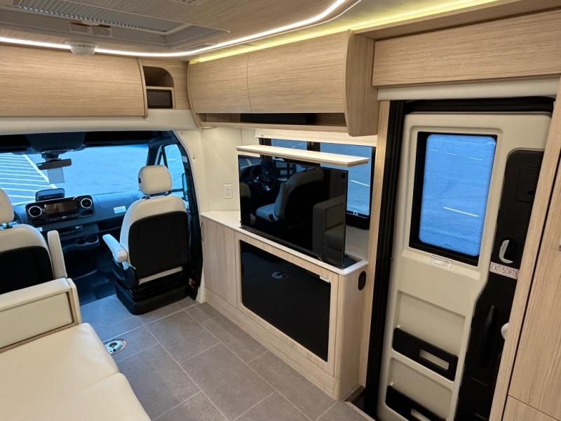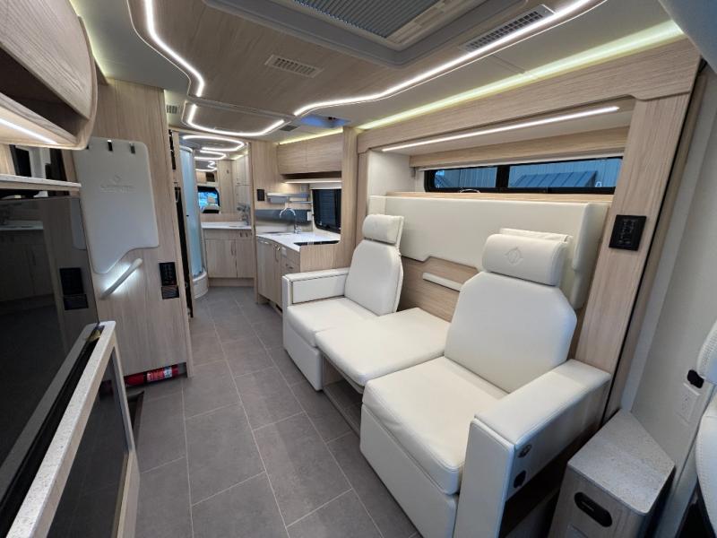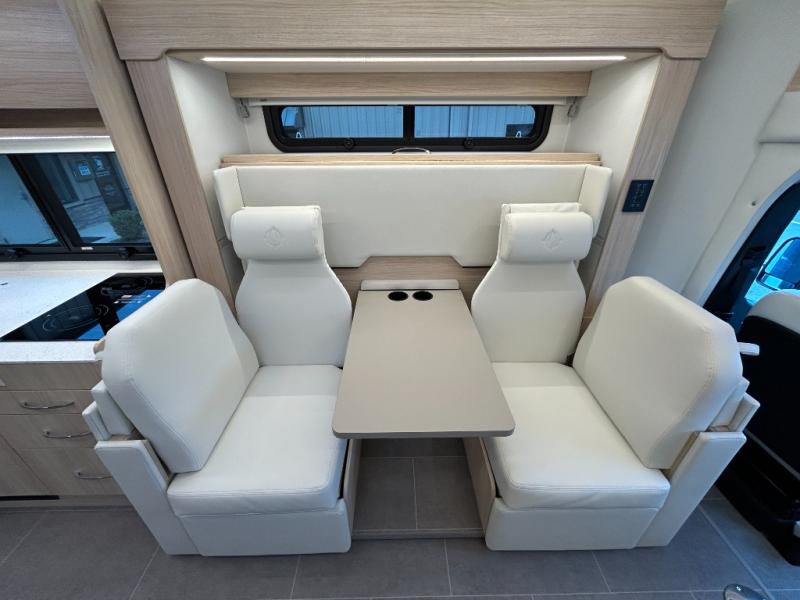 Each Unity Class B+ diesel motorhome by Leisure Travel sits on a durable Mercedes-Benz Sprinter 3500 dual rear wheel chassis with a 2.0-L Turbocharged I-4 diesel engine to power your adventures. The powder coated steel undercarriage support structure and vacuum-bonded construction provide a coach that will last for years, and there are sleek exterior paint options to make the coach your own. You'll love driving the Unity with its electronic stability control, adaptive cruise control, 9-speed automatic transmission with quieter noise levels and more comfort. The luxurious interior includes Ultrafabrics, a contoured solid surface Corian countertop in the kitchen, modern cabinetry finishes, plus many more comforts. And all of your power need will be met with the optioned dual 270-Ah 12V Lithium coach batteries with an internal heating system, plus a 3000W pure sine inverter and a 30 Amp power cord.