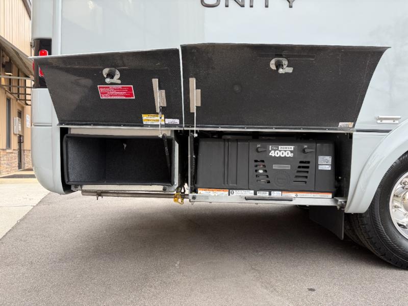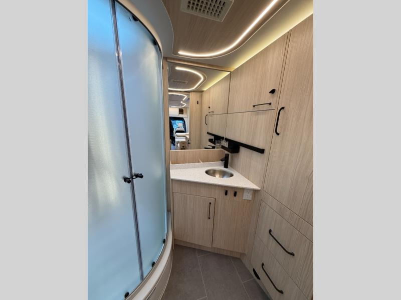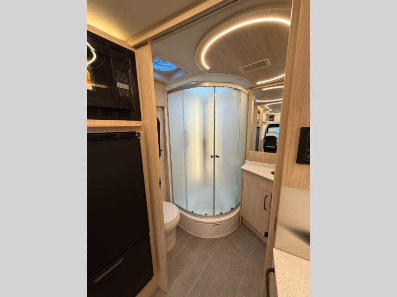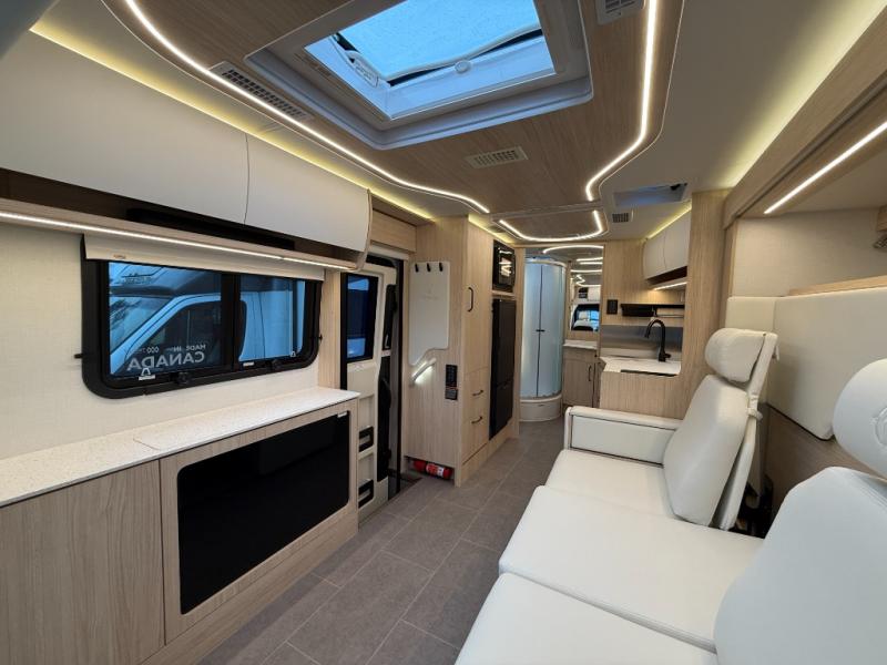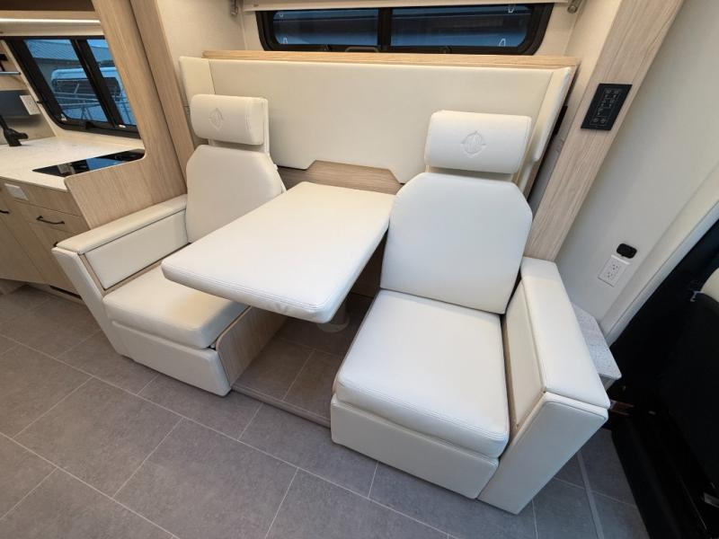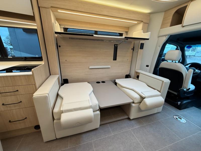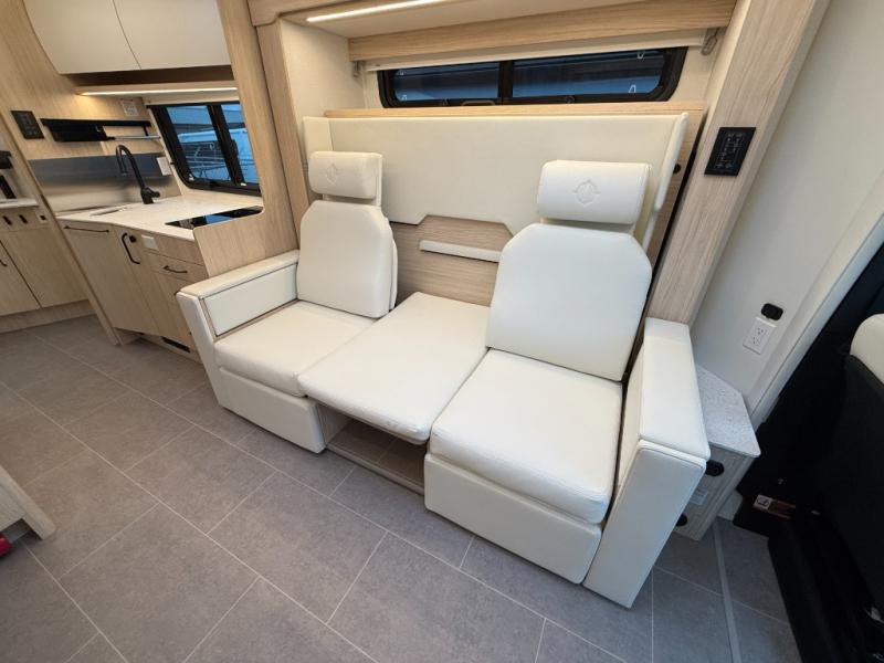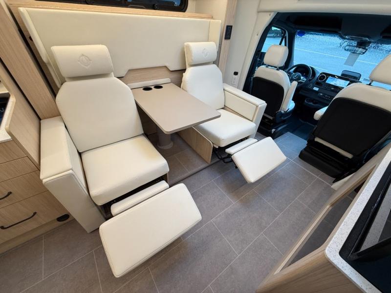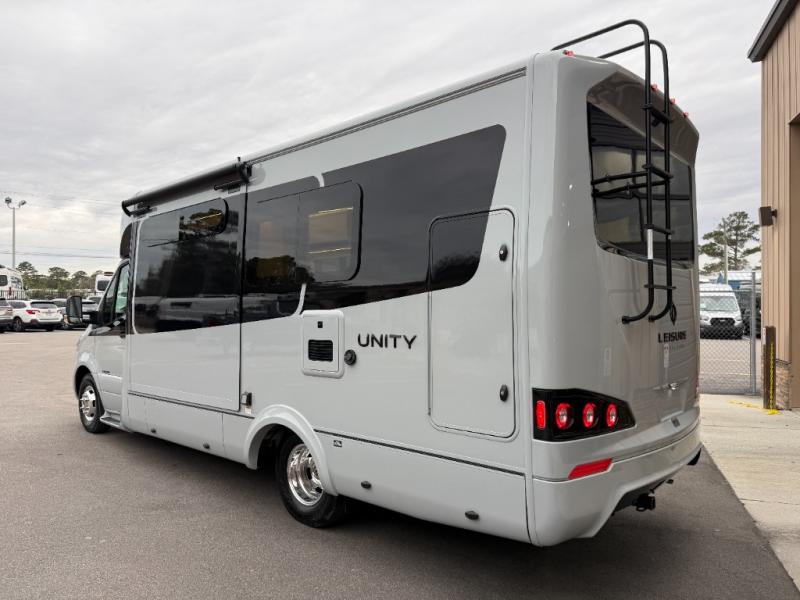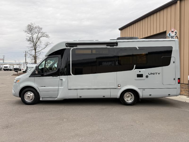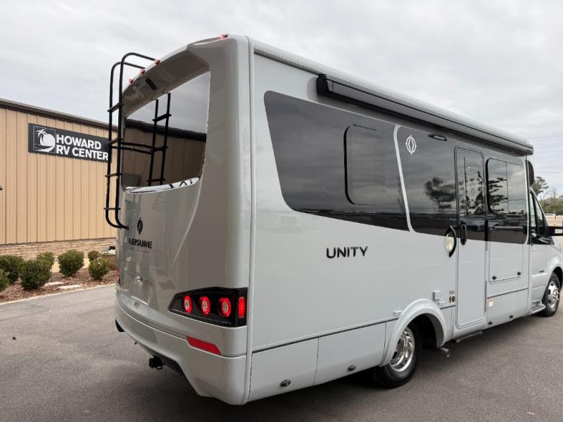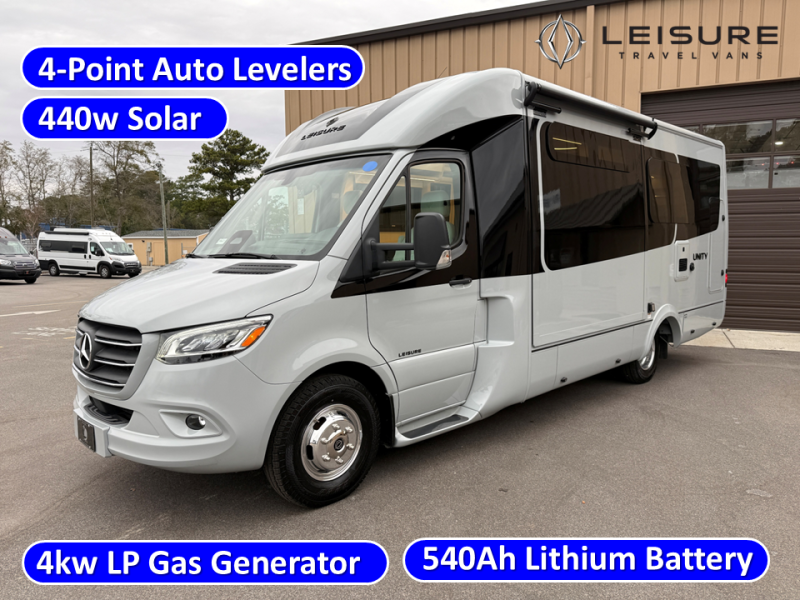 Each Unity Class B+ diesel motorhome by Leisure Travel sits on a durable Mercedes-Benz Sprinter 3500 dual rear wheel chassis with a 2.0-L Turbocharged I-4 diesel engine to power your adventures. The powder coated steel undercarriage support structure and vacuum-bonded construction provide a coach that will last for years, and there are sleek exterior paint options to make the coach your own. You'll love driving the Unity with its electronic stability control, adaptive cruise control, 9-speed automatic transmission with quieter noise levels and more comfort. The luxurious interior includes Ultrafabrics, a contoured solid surface Corian countertop in the kitchen, modern cabinetry finishes, plus many more comforts. And all of your power need will be met with dual 270-Ah 12V Lithium coach batteries with an internal heating system, plus a 3000W pure sine inverter and a 30 Amp power cord.