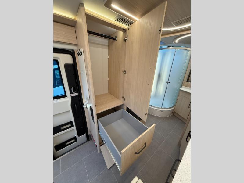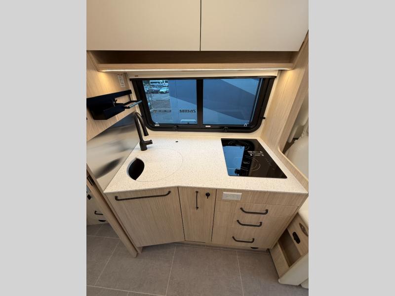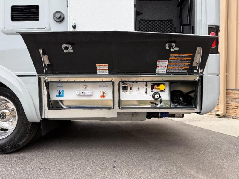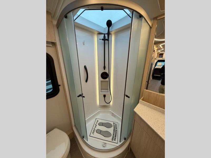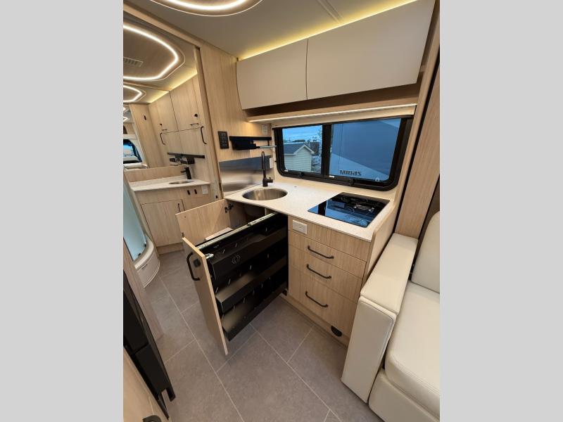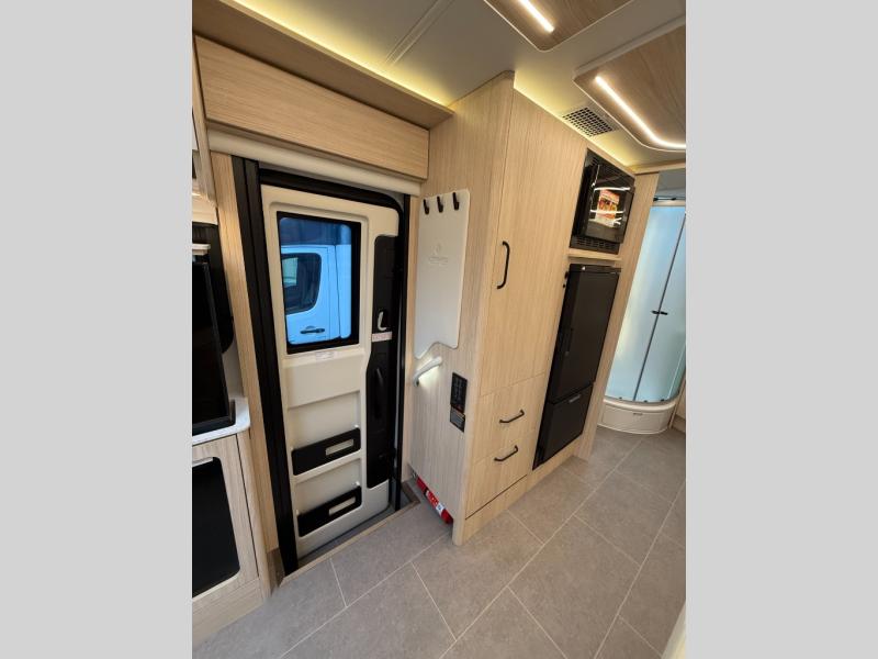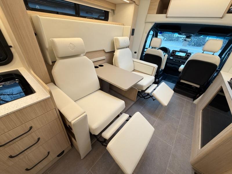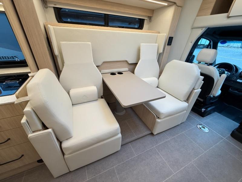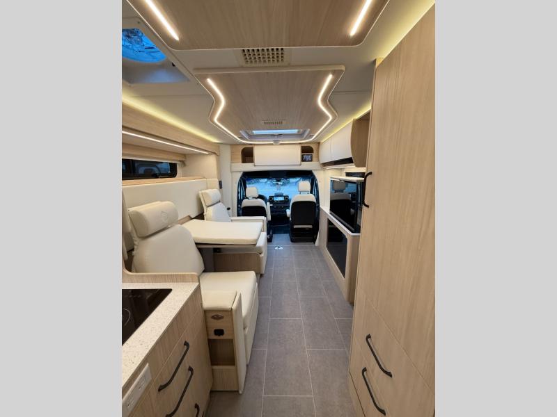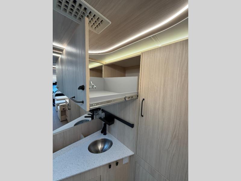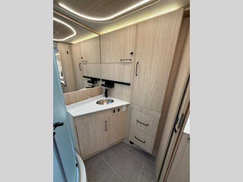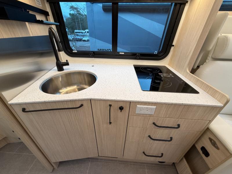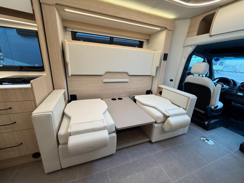 Each Unity Class B+ diesel motorhome by Leisure Travel sits on a durable Mercedes-Benz Sprinter 3500 dual rear wheel chassis with a 2.0-L Turbocharged I-4 diesel engine to power your adventures. The powder coated steel undercarriage support structure and vacuum-bonded construction provide a coach that will last for years, and there are sleek exterior paint options to make the coach your own. You'll love driving the Unity with its electronic stability control, adaptive cruise control, 9-speed automatic transmission with quieter noise levels and more comfort. The luxurious interior includes Ultrafabrics, a contoured solid surface Corian countertop in the kitchen, modern cabinetry finishes, plus many more comforts. And all of your power need will be met with dual 270-Ah 12V Lithium coach batteries with an internal heating system, plus a 3000W pure sine inverter and a 30 Amp power cord.