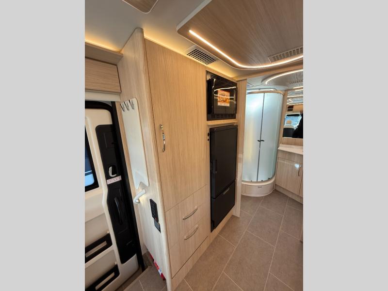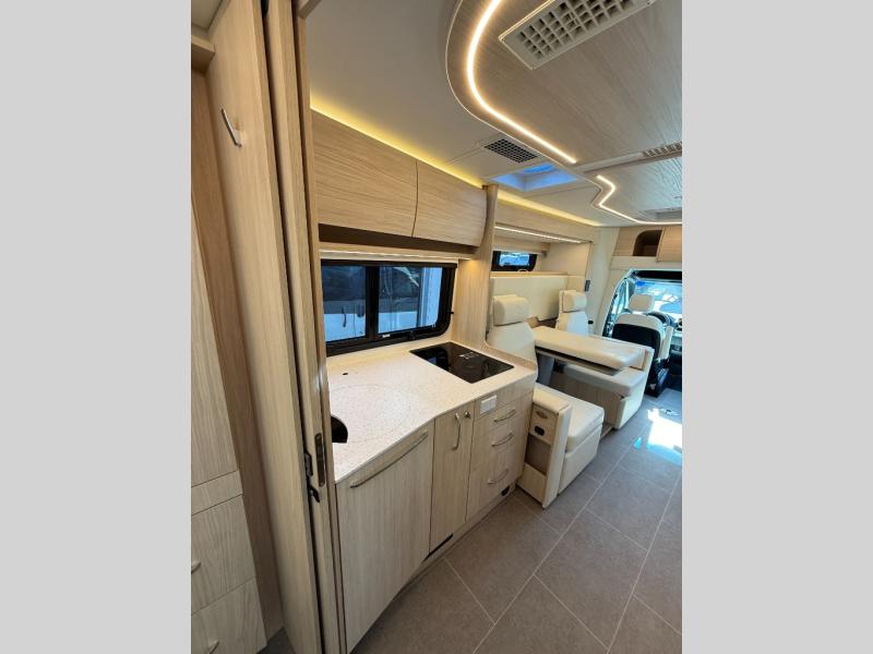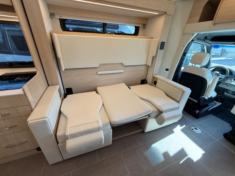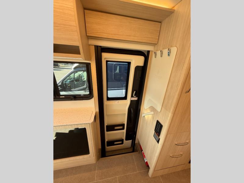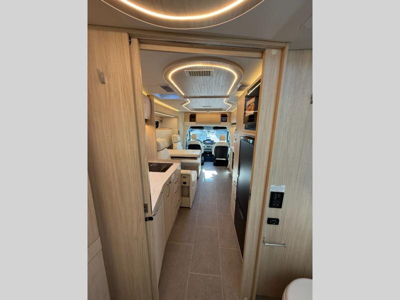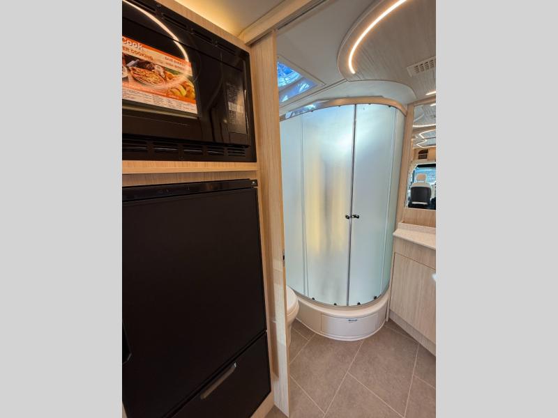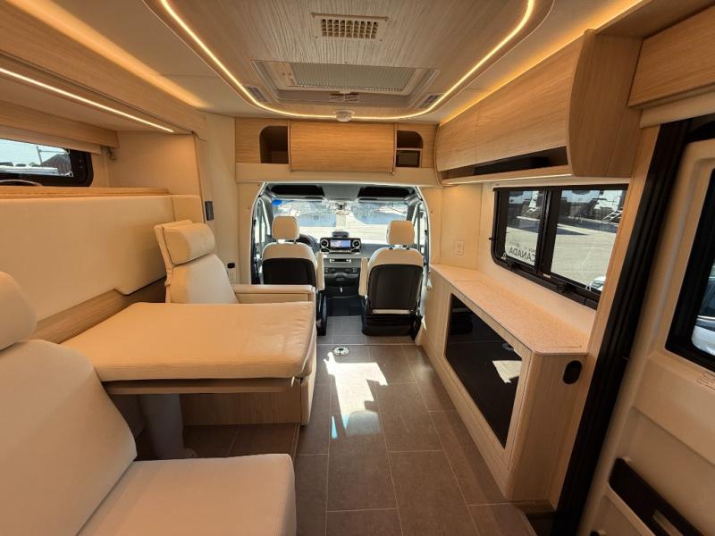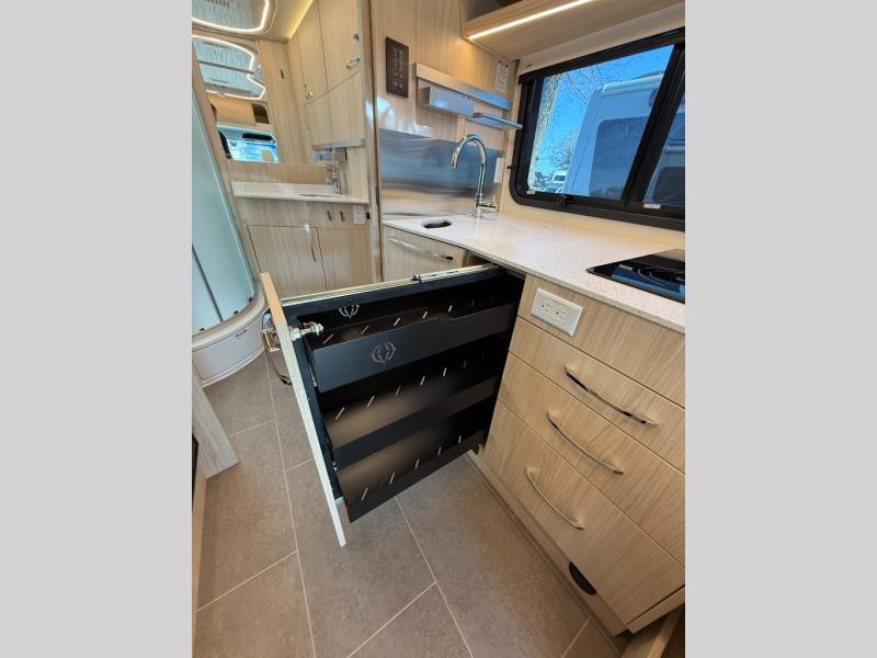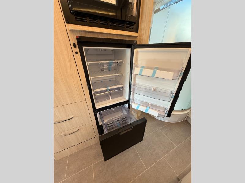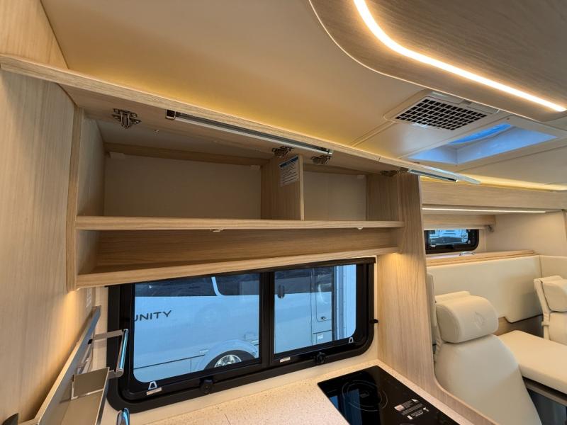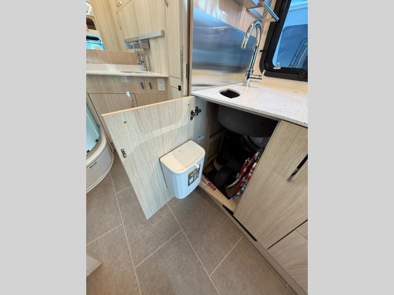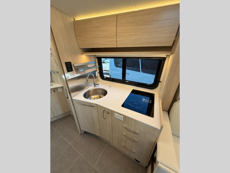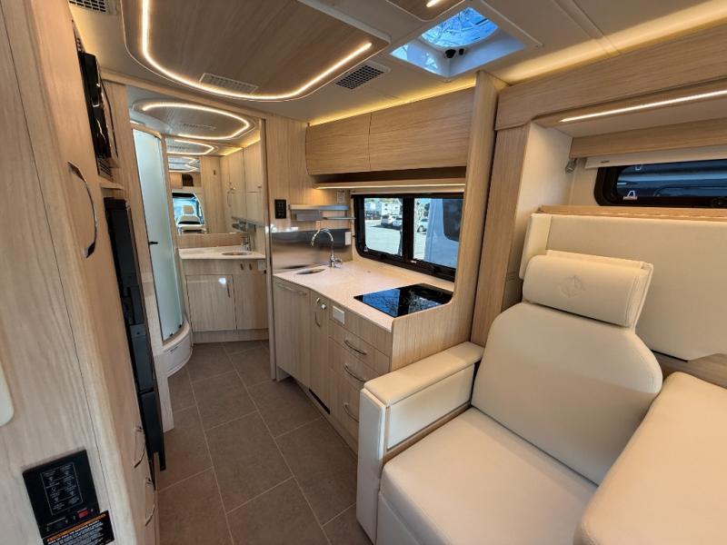 Each Unity Class B+ diesel motorhome by Leisure Travel sits on a durable Mercedes-Benz Sprinter 3500 dual rear wheel chassis with a 2.0-L Turbocharged I-4 diesel engine to power your adventures. The powder coated steel undercarriage support structure and vacuum-bonded construction provide a coach that will last for years, and there are sleek exterior paint options to make the coach your own. You'll love driving the Unity with its electronic stability control, adaptive cruise control, 9-speed automatic transmission with quieter noise levels and more comfort. The luxurious interior includes Ultrafabrics, a contoured solid surface Corian countertop in the kitchen, modern cabinetry finishes, plus many more comforts. And all of your power need will be met with the upgraded dual 270-Ah 12V Lithium coach batteries (540Ah combined) with an internal heating system, plus a 3000 watt pure sine inverter and a 30 Amp power cord.