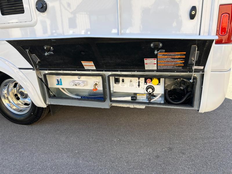 Traveling will be convenient and comfortable with this versatile Murphy bed and redesigned leisure lounge, which includes dual power reclining chairs, an updated dinette table and a large panoramic window! At night, the lounge seating is hidden as you flip-down the Murphy bed for a comfortable night's rest. In the morning, tuck it all away to bring back your living space. You will also enjoy the convenient kitchen amenities in place so you can easily whip up a meal or snack while you are stopped, and for overnight you can get refreshed for a new day in the rear bath featuring a radius shower with a skylight, a sink, and closet space for your things.
