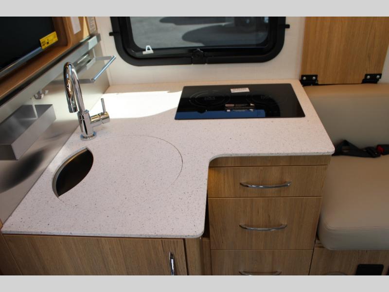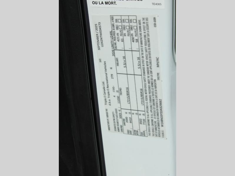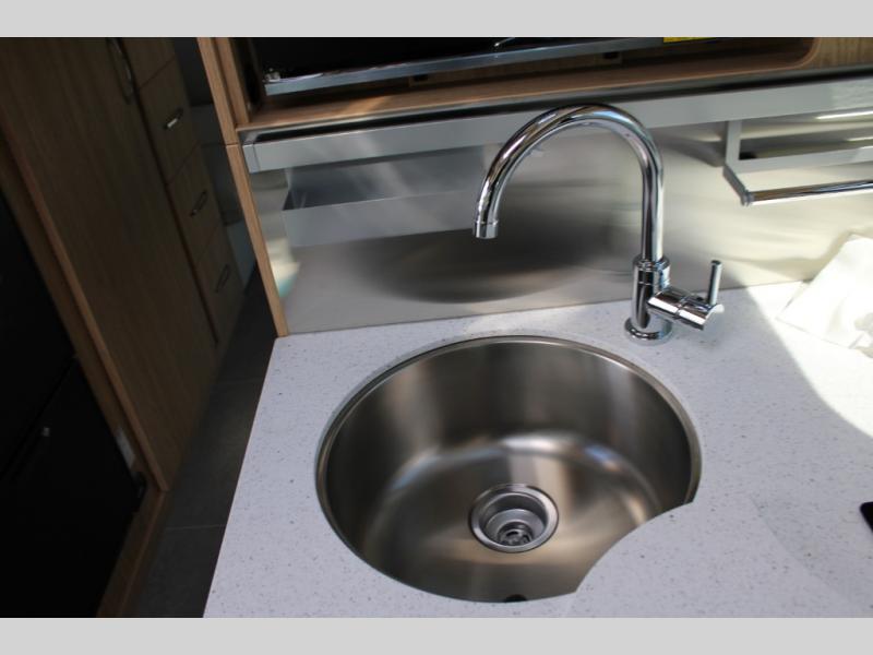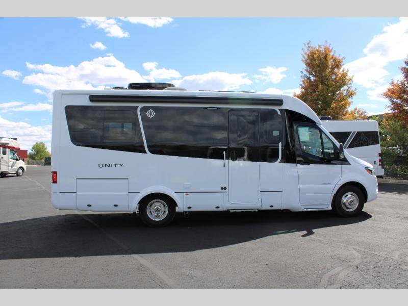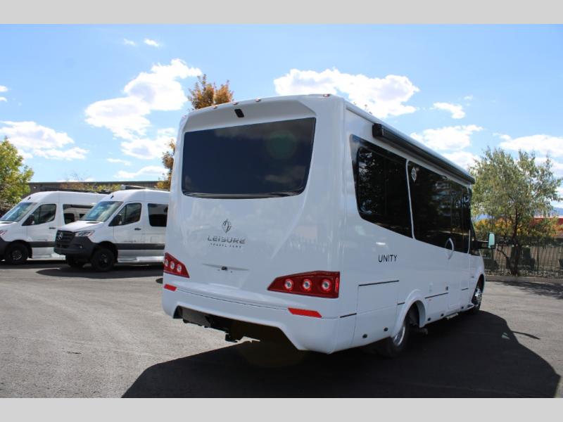 Each Unity Class B+ diesel motorhome by Leisure Travel sits on a durable Mercedes-Benz Sprinter 3500 dual rear wheel chassis with a 2.0-L Turbocharged I-4 diesel engine to power your adventures. The powder coated steel undercarriage support structure and vacuum-bonded construction provide a coach that will last for years, and there are eight sleek exterior paint options to make the coach your own. You'll love driving the Unity with its electronic stability control, adaptive cruise control, 9-speed automatic transmission with quieter noise levels and more comfort. There is even a digital mirror with sharp high-resolution that can be switched between convectional display and digital display for convenience. The luxurious interior includes Ultraleather furniture, a contoured solid surface Corian countertop in the kitchen, new decor options, plus many more comforts. And all of your power need will be met with 270-Ah, 12V Lithium coach batteries with an internal heating system, plus a 3000W pure sine inverter and a 30 Amp power cord. If you choose the optional 60th Anniversary Edition, you will enjoy the Diamond White exterior paint, diamond-quilted upholstery, Cool Ice Ultrafabrics, matte black hardware, and more elegant features that are exclusive to this package!