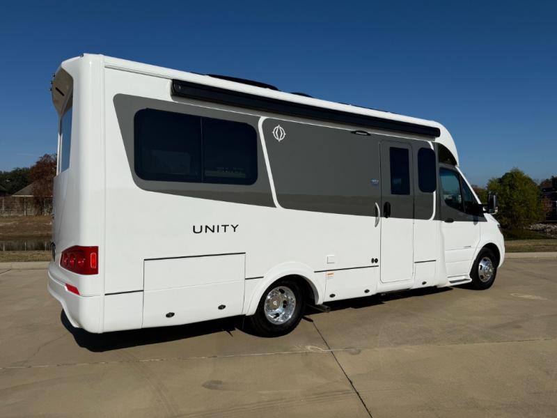 Each Unity Class B+ diesel motorhome by Leisure Travel sits on a durable Mercedes-Benz Sprinter 3500 dual rear wheel chassis with a 2.0-L Turbocharged I-4 diesel engine to power your adventures. The powder coated steel undercarriage support structure and vacuum-bonded construction provide a coach that will last for years, and there are eight sleek exterior paint options to make the coach your own. You'll love driving the Unity with its electronic stability control, adaptive cruise control, 9-speed automatic transmission with quieter noise levels and more comfort. There is even a digital mirror with sharp high-resolution that can be switched between convectional display and digital display for convenience. The luxurious interior includes Ultraleather furniture, a contoured solid surface Corian countertop in the kitchen, new decor options, plus many more comforts. And all of your power need will be met with 270-Ah, 12V Lithium coach batteries with an internal heating system, plus a 3000W pure sine inverter and a 30 Amp power cord. If you choose the optional 60th Anniversary Edition, you will enjoy the Diamond White exterior paint, diamond-quilted upholstery, Cool Ice Ultrafabrics, matte black hardware, and more elegant features that are exclusive to this package!
