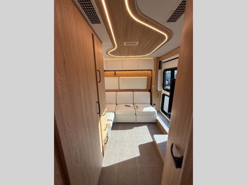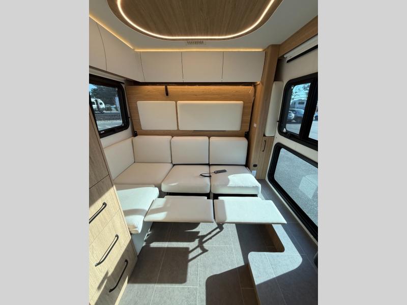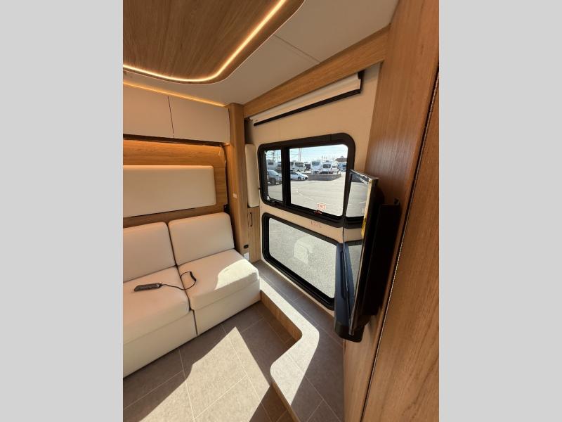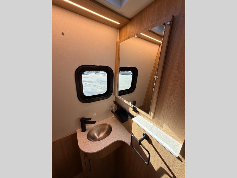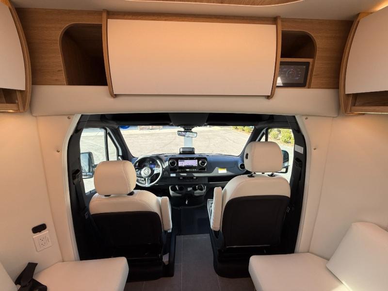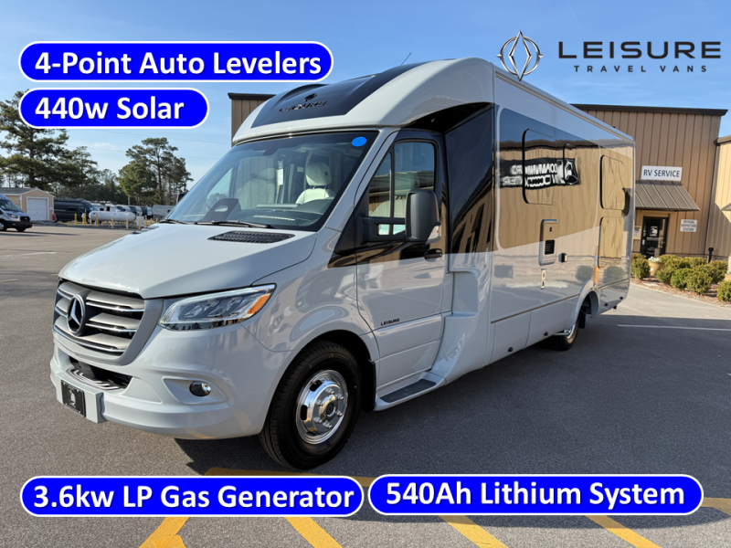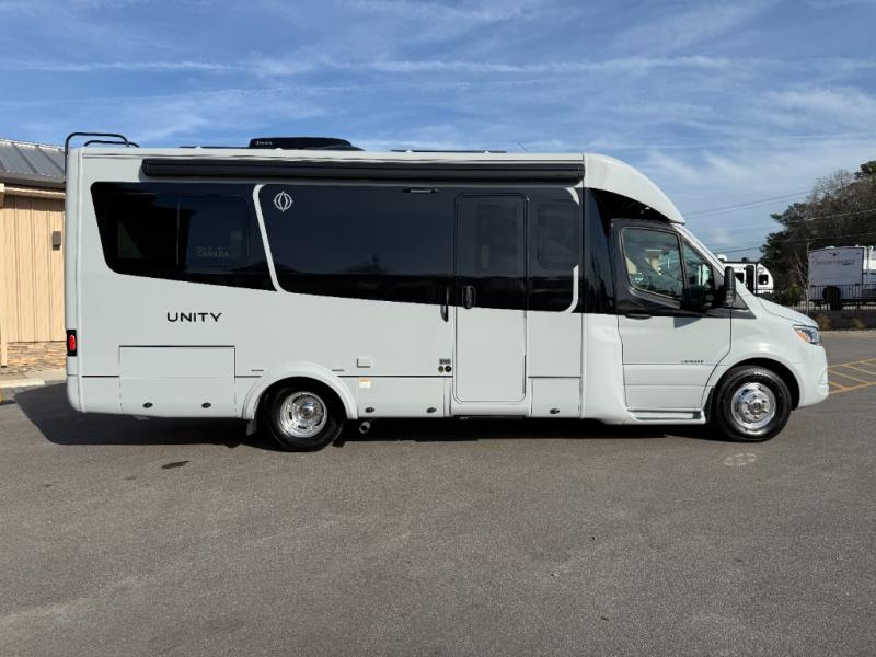 Each Unity Class B+ diesel motorhome by Leisure Travel sits on a durable Mercedes-Benz Sprinter 3500 dual rear wheel chassis with a 2.0-L Turbocharged I-4 diesel engine to power your adventures. The powder coated steel undercarriage support structure and vacuum-bonded construction provide a coach that will last for years, and there are sleek exterior paint options to make the coach your own. You'll love driving the Unity with its electronic stability control, adaptive cruise control, 9-speed automatic transmission with quieter noise levels and more comfort. The luxurious interior includes Ultrafabrics, a contoured solid surface Corian countertop in the kitchen, modern cabinetry finishes, plus many more comforts. And all of your power need will be met with the upgraded dual 270-Ah 12V Lithium coach batteries with an internal heating system, plus a 3000 watt pure sine inverter and a 30 Amp power cord.