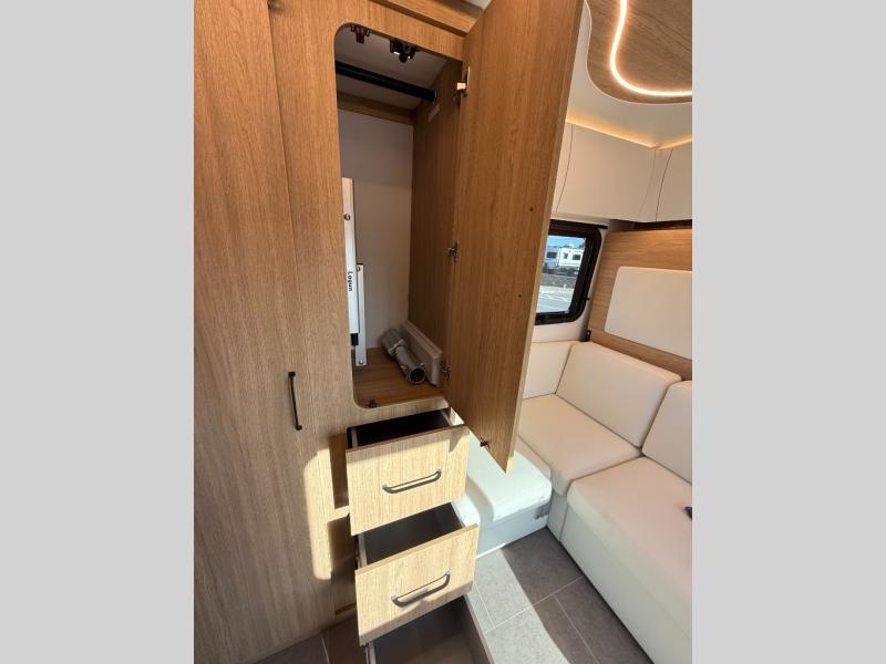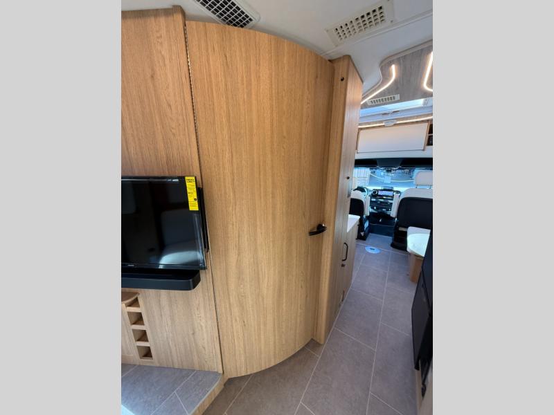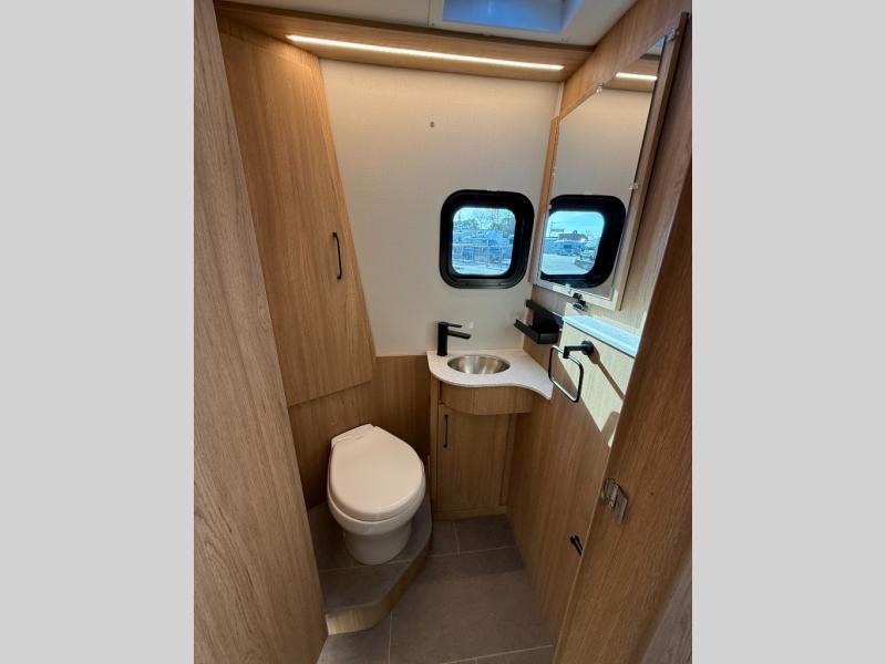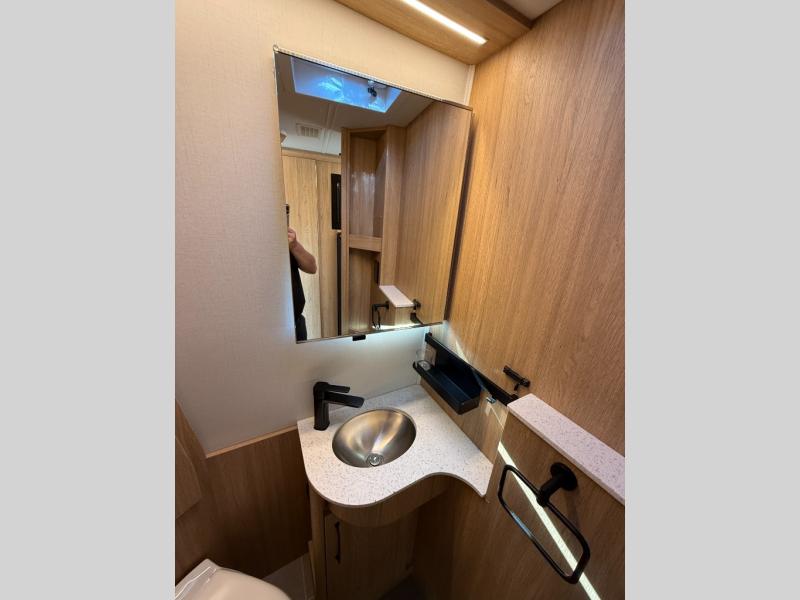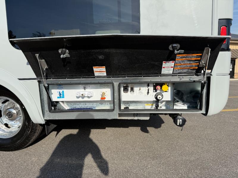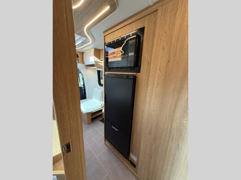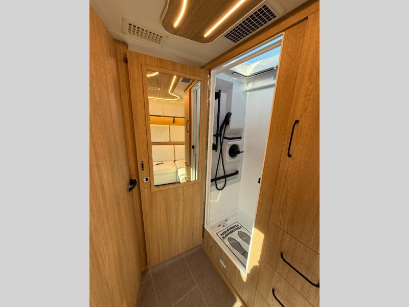Each Unity Class B+ diesel motorhome by Leisure Travel sits on a durable Mercedes-Benz Sprinter 3500 dual rear wheel chassis with a 2.0-L Turbocharged I-4 diesel engine to power your adventures. The powder coated steel undercarriage support structure and vacuum-bonded construction provide a coach that will last for years, and there are sleek exterior paint options to make the coach your own. You'll love driving the Unity with its electronic stability control, adaptive cruise control, 9-speed automatic transmission with quieter noise levels and more comfort. The luxurious interior includes Ultrafabrics, a contoured solid surface Corian countertop in the kitchen, modern cabinetry finishes, plus many more comforts. And all of your power need will be met with the upgraded dual 270-Ah 12V Lithium coach batteries with an internal heating system, plus a 3000 watt pure sine inverter and a 30 Amp power cord.