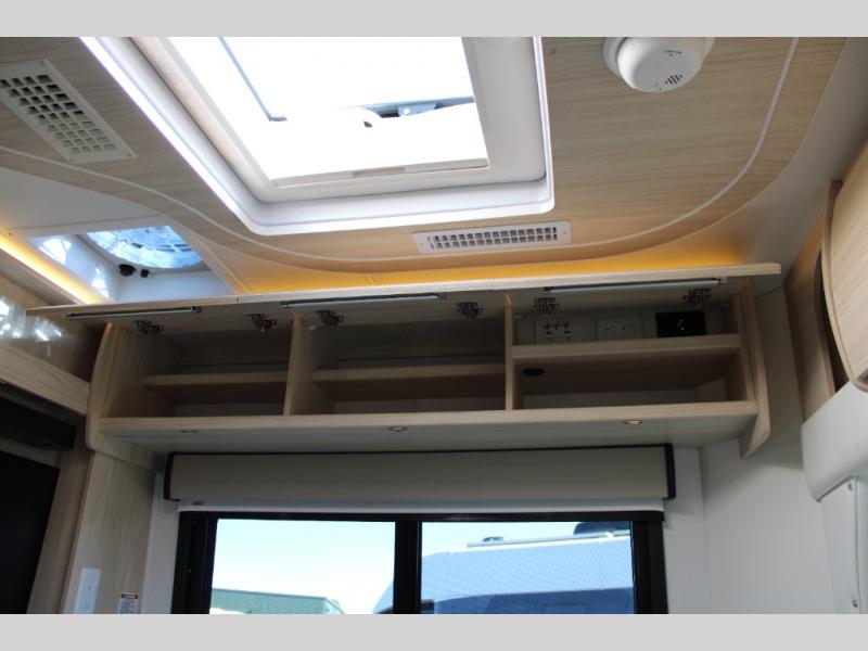 Comfortable and versatile features allow you to travel the way you like in this Unity Class B+ diesel motorhome. You have plenty of choices on how you want to sleep and how you would like to dine. Each night, you can sleep separately from your spouse on one of the two twin-size beds or convert the twins into one king-size bed for more space together. Even the bathroom area is multi-functional because of its separate lavatory from the enclosed shower, and the adjustable front seating area is handy for dining, sleeping, or playing a card game with the family. The flush-mount LP cooktop makes it easy to make your delicious meals, and if you have any leftovers, then you can store them inside the 12V compressor refrigerator with a bottom freezer drawer.