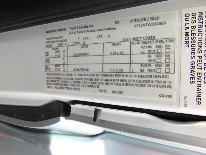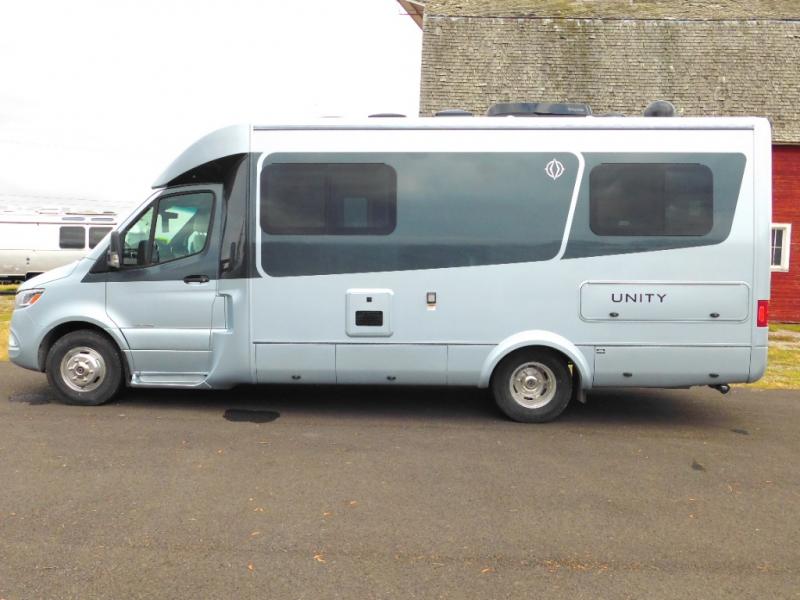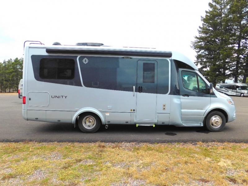Each Unity Class B+ diesel motorhome by Leisure Travel sits on a durable Mercedes-Benz Sprinter 3500 dual rear wheel chassis with a 2.0-L Turbocharged I-4 diesel engine to power your adventures. The powder coated steel undercarriage support structure and vacuum-bonded construction provide a coach that will last for years, and there are eight sleek exterior paint options to make the coach your own. You'll love driving the Unity with its electronic stability control, adaptive cruise control, 9-speed automatic transmission with quieter noise levels and more comfort. There is even a digital mirror with sharp high-resolution that can be switched between convectional display and digital display for convenience. The luxurious interior includes Ultraleather furniture, a contoured solid surface Corian countertop in the kitchen, new decor options, plus many more comforts. And all of your power need will be met with 270-Ah, 12V Lithium coach batteries with an internal heating system, plus a 3000W pure sine inverter and a 30 Amp power cord. If you choose the optional 60th Anniversary Edition, you will enjoy the Diamond White exterior paint, diamond-quilted upholstery, Cool Ice Ultrafabrics, matte black hardware, and more elegant features that are exclusive to this package!