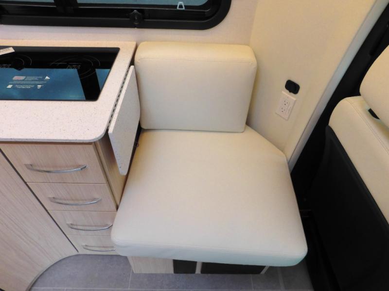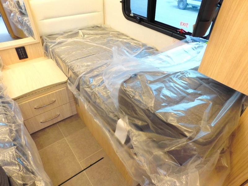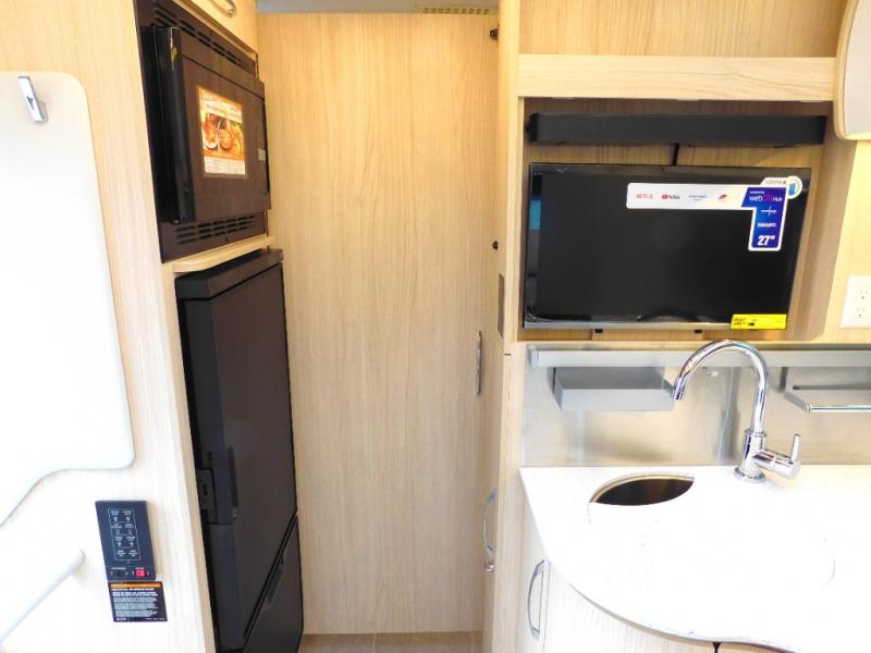 Comfortable and versatile features allow you to travel the way you like in this Unity Class B+ diesel motorhome. You have plenty of choices on how you want to sleep and how you would like to dine. Each night, you can sleep separately from your spouse on one of the two twin-size beds or convert the twins into one king-size bed for more space together. Even the bathroom area is multi-functional because of its separate lavatory from the enclosed shower, and the adjustable front seating area is handy for dining, sleeping, or playing a card game with the family. The flush-mount LP cooktop makes it easy to make your delicious meals, and if you have any leftovers, then you can store them inside the 12V compressor refrigerator with a bottom freezer drawer.