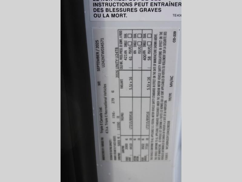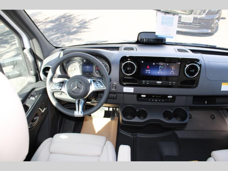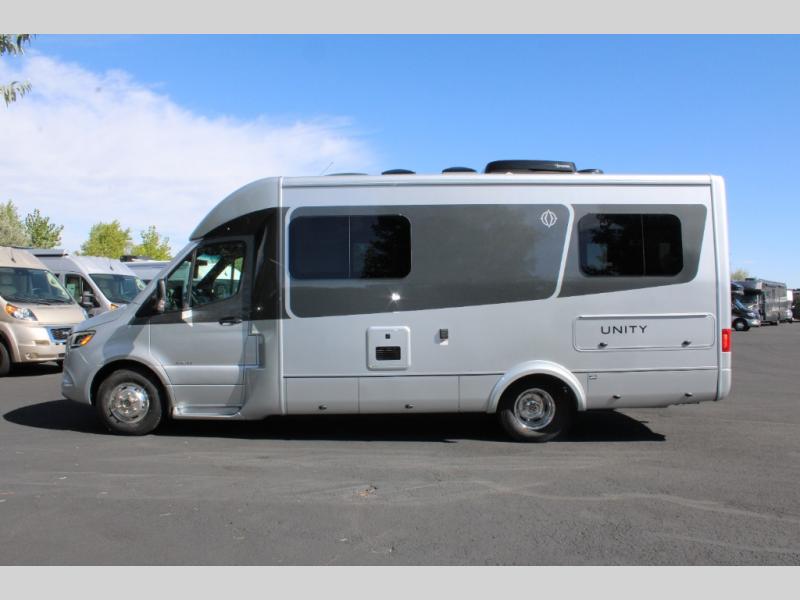 Each Unity Class B+ diesel motorhome by Leisure Travel sits on a durable Mercedes-Benz Sprinter 3500 dual rear wheel chassis with a 2.0-L Turbocharged I-4 diesel engine to power your adventures. The powder coated steel undercarriage support structure and vacuum-bonded construction provide a coach that will last for years, and there are eight sleek exterior paint options to make the coach your own. You'll love driving the Unity with its electronic stability control, adaptive cruise control, 9-speed automatic transmission with quieter noise levels and more comfort. There is even a digital mirror with sharp high-resolution that can be switched between convectional display and digital display for convenience. The luxurious interior includes Ultraleather furniture, a contoured solid surface Corian countertop in the kitchen, new decor options, plus many more comforts. And all of your power need will be met with 270-Ah, 12V Lithium coach batteries with an internal heating system, plus a 3000W pure sine inverter and a 30 Amp power cord. If you choose the optional 60th Anniversary Edition, you will enjoy the Diamond White exterior paint, diamond-quilted upholstery, Cool Ice Ultrafabrics, matte black hardware, and more elegant features that are exclusive to this package!