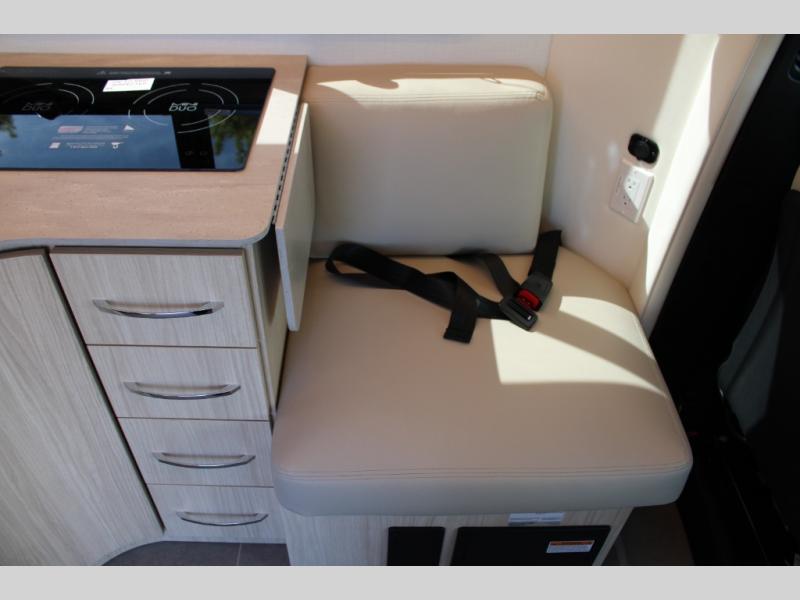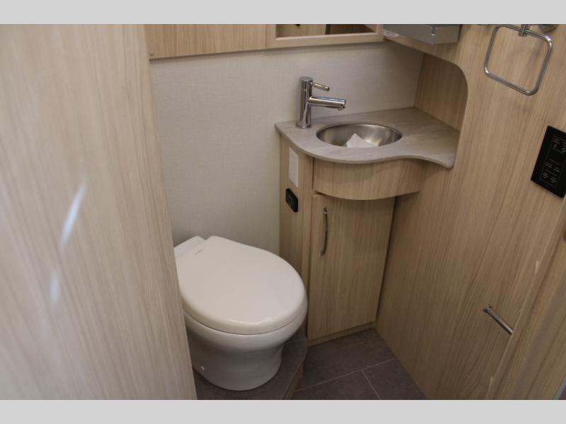 Comfortable and versatile features allow you to travel the way you like in this Unity Class B+ diesel motorhome. You have plenty of choices on how you want to sleep and how you would like to dine. Each night, you can sleep separately from your spouse on one of the two twin-size beds or convert the twins into one king-size bed for more space together. Even the bathroom area is multi-functional because of its separate lavatory from the enclosed shower, and the adjustable front seating area is handy for dining, sleeping, or playing a card game with the family. The flush-mount LP cooktop makes it easy to make your delicious meals, and if you have any leftovers, then you can store them inside the 12V compressor refrigerator with a bottom freezer drawer.