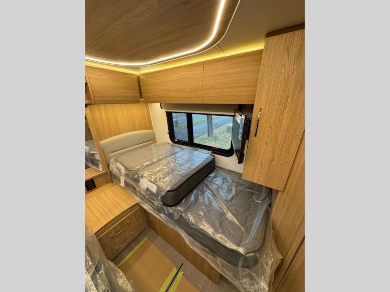 Each Unity Class B+ diesel motorhome by Leisure Travel sits on a durable Mercedes-Benz Sprinter 3500 dual rear wheel chassis with a 2.0-L Turbocharged I-4 diesel engine to power your adventures. The powder coated steel undercarriage support structure and vacuum-bonded construction provide a coach that will last for years, and there are eight sleek exterior paint options to make the coach your own. You'll love driving the Unity with its electronic stability control, adaptive cruise control, 9-speed automatic transmission with quieter noise levels and more comfort. There is even a digital mirror with sharp high-resolution that can be switched between convectional display and digital display for convenience. The luxurious interior includes Ultraleather furniture, a contoured solid surface Corian countertop in the kitchen, new decor options, plus many more comforts. And all of your power need will be met with 270-Ah, 12V Lithium coach batteries with an internal heating system, plus a 3000W pure sine inverter and a 30 Amp power cord. If you choose the optional 60th Anniversary Edition, you will enjoy the Diamond White exterior paint, diamond-quilted upholstery, Cool Ice Ultrafabrics, matte black hardware, and more elegant features that are exclusive to this package!