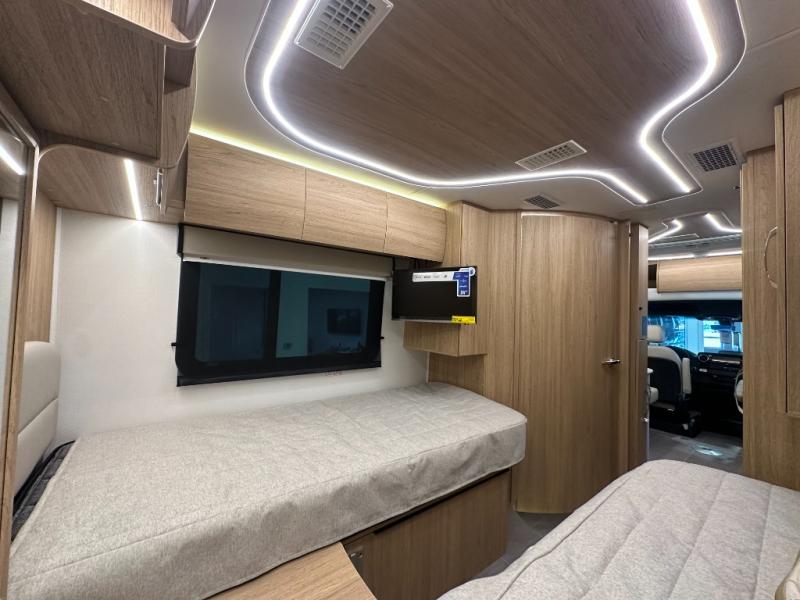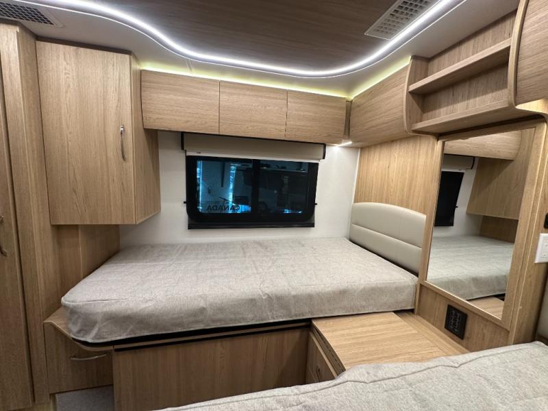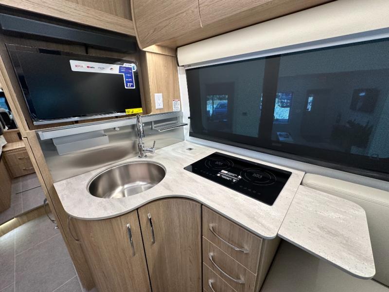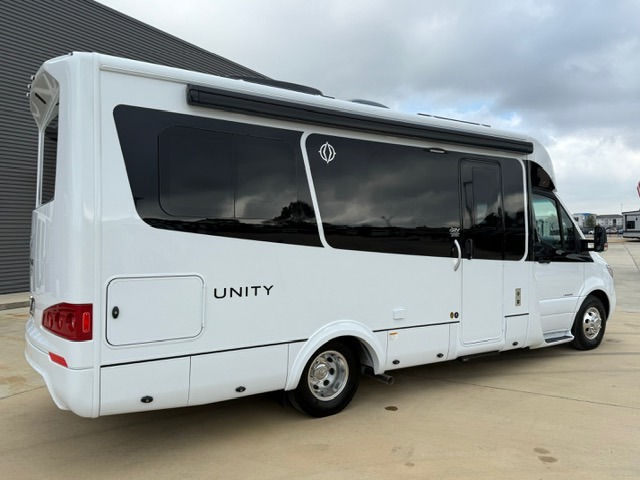Each Unity Class B+ diesel motorhome by Leisure Travel sits on a durable Mercedes-Benz Sprinter 3500 dual rear wheel chassis with a 2.0-L Turbocharged I-4 diesel engine to power your adventures. The powder coated steel undercarriage support structure and vacuum-bonded construction provide a coach that will last for years, and there are eight sleek exterior paint options to make the coach your own. You'll love driving the Unity with its electronic stability control, adaptive cruise control, 9-speed automatic transmission with quieter noise levels and more comfort. There is even a digital mirror with sharp high-resolution that can be switched between convectional display and digital display for convenience. The luxurious interior includes Ultraleather furniture, a contoured solid surface Corian countertop in the kitchen, new decor options, plus many more comforts. And all of your power need will be met with 270-Ah, 12V Lithium coach batteries with an internal heating system, plus a 3000W pure sine inverter and a 30 Amp power cord. If you choose the optional 60th Anniversary Edition, you will enjoy the Diamond White exterior paint, diamond-quilted upholstery, Cool Ice Ultrafabrics, matte black hardware, and more elegant features that are exclusive to this package!